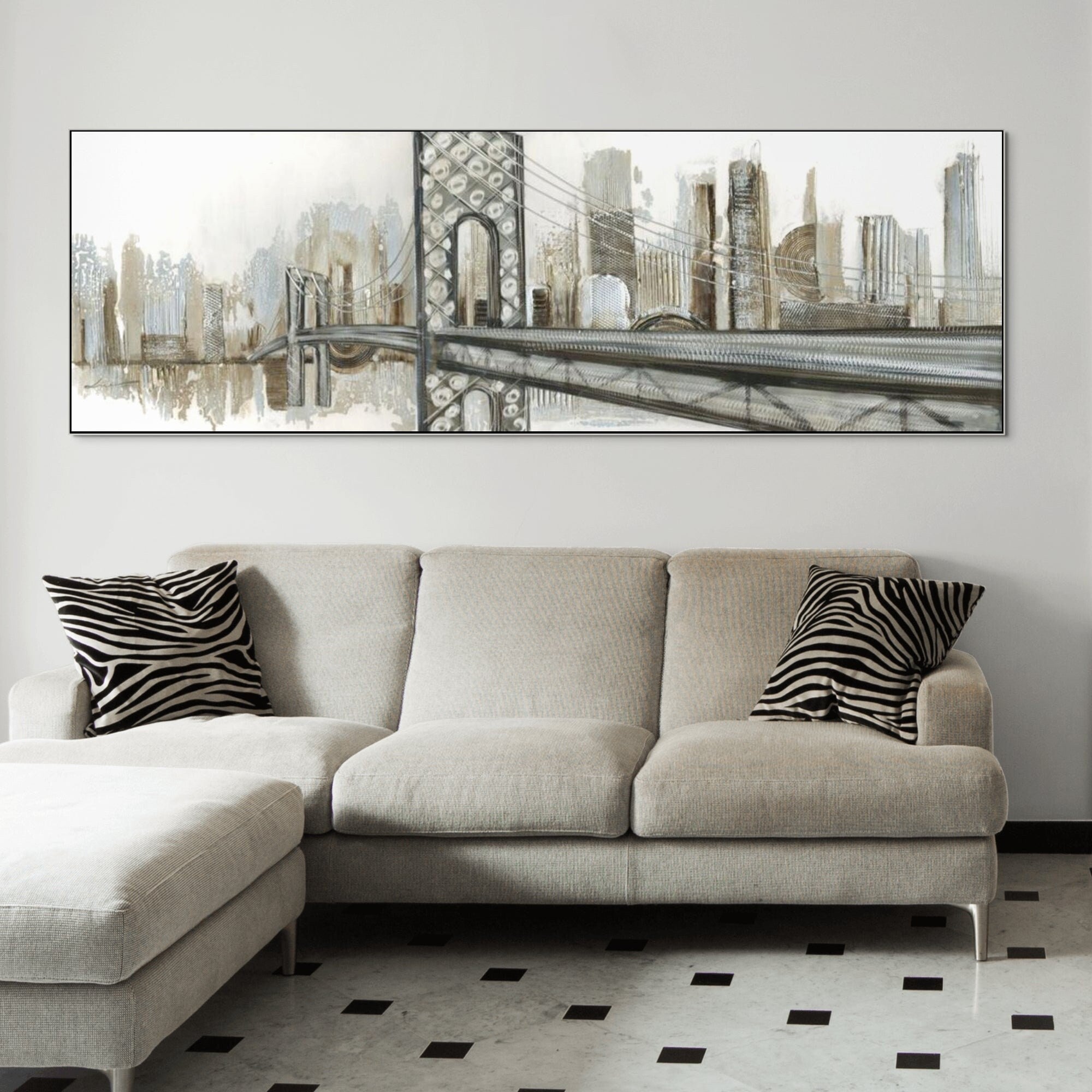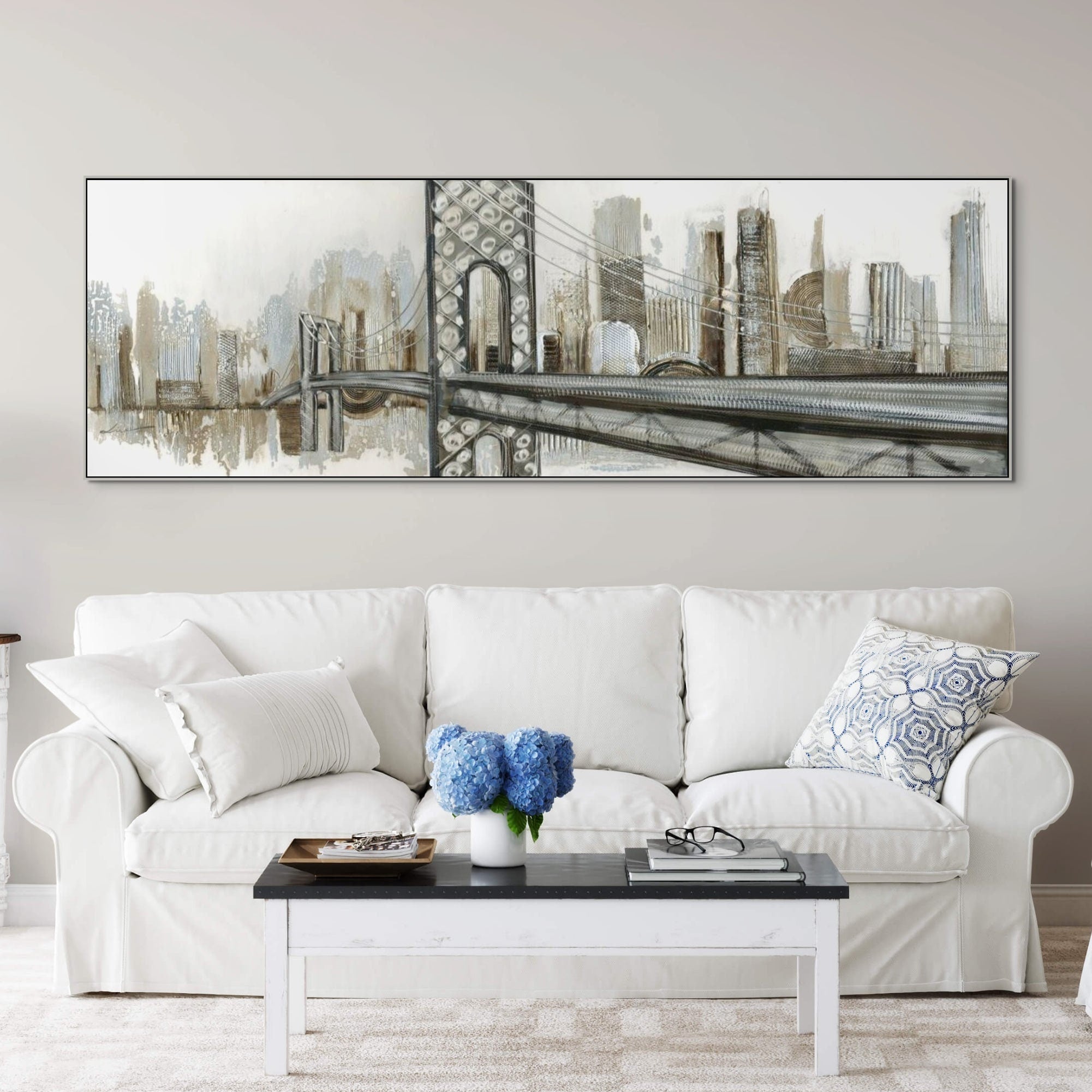 New York Wall Art - Hand-Painted Abstract Gray Cityscape Canvas, Large Modern Wall Decor for Living Room, Unique Housewarming Gift