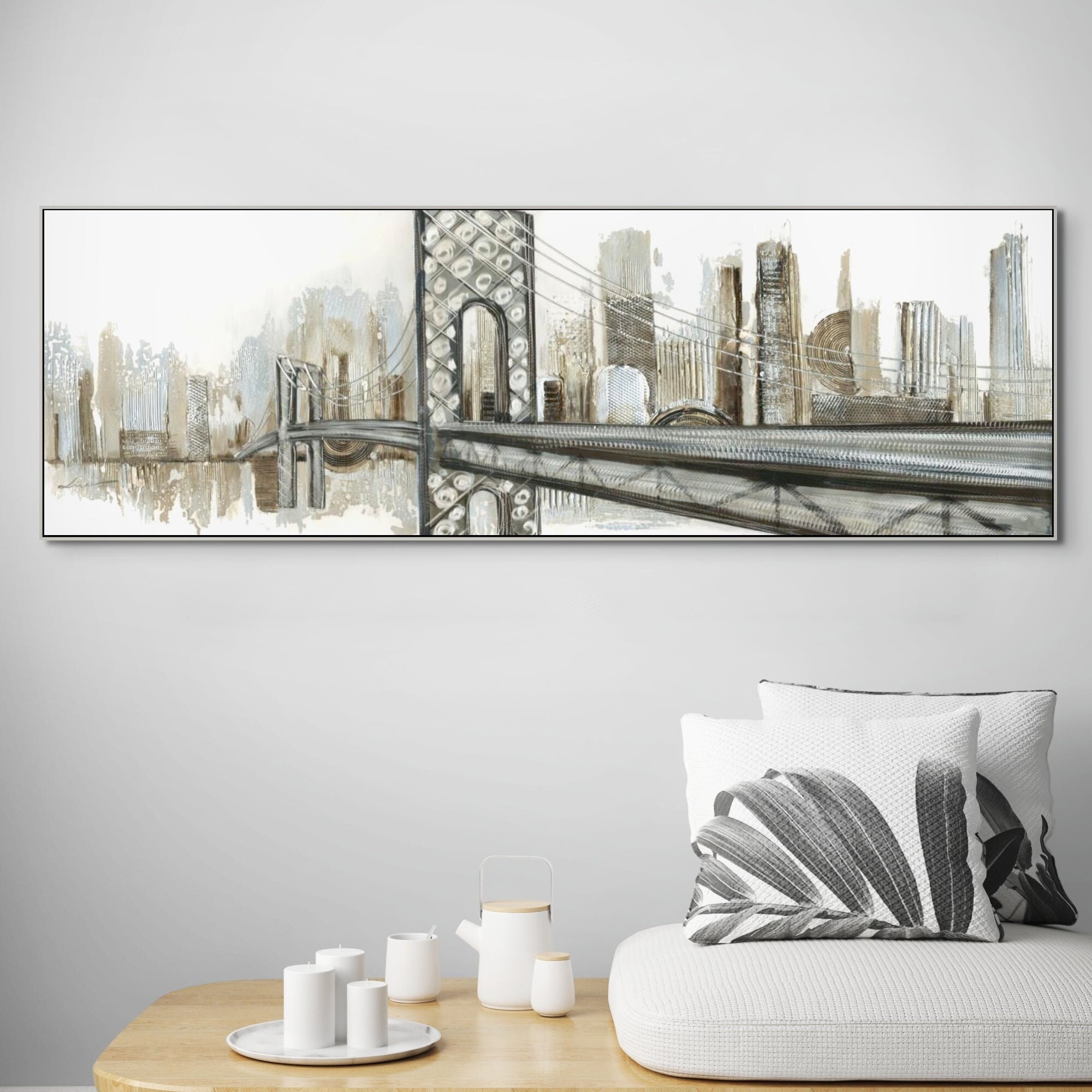 Crafted with meticulous attention to detail, this large wall art spans a generous canvas, perfect for creating a focal point in your bedroom, living room, or office. The textured wall art layers shades of gray, evoking the city's iconic skyscrapers and bustling streets, while the abstract design invites endless interpretation and fascination. The use of high-quality paints ensures that the cityscape canvas art remains vibrant and enduring, a contemporary art piece that will complement any decor theme, from minimalist to vintage.