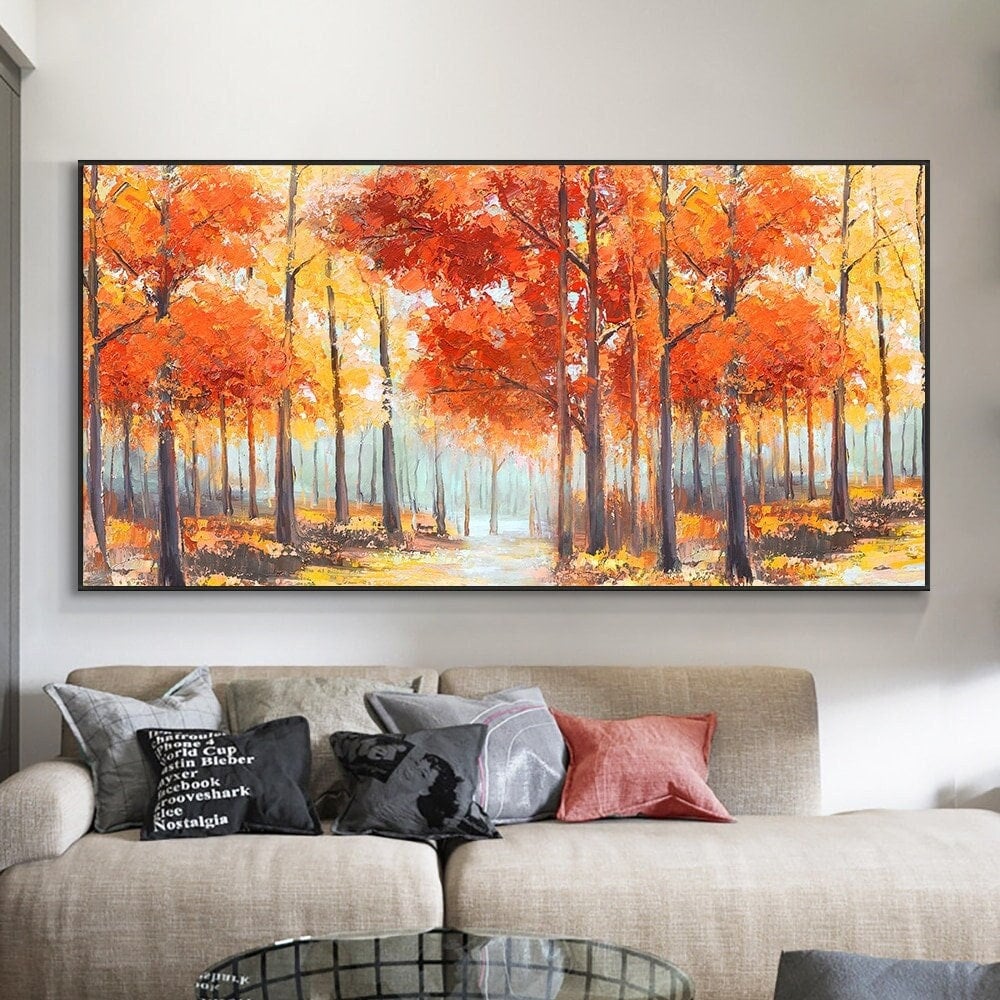 Crafted with the highest quality materials, this painting is built to last, ensuring that its stunning colors remain vibrant over time. The artwork comes rolled or framed and ready to hang. The framed wall art is crafted expertly and tastefully to complement its contemporary style. To maintain the landscape painting's allure, keep it out of direct sunlight and dust it gently with a soft, dry cloth. This abstract tree wall art is not just a decoration but a statement of your appreciation for art.