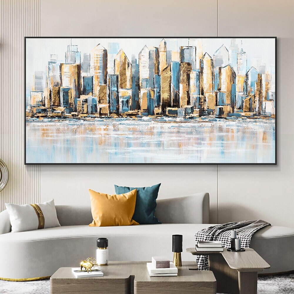 Modern City Art Oil Painting, Large Abstract Cityscape Canvas, Urban Skyline Wall Art for Home Decor, Unique Housewarming Gift