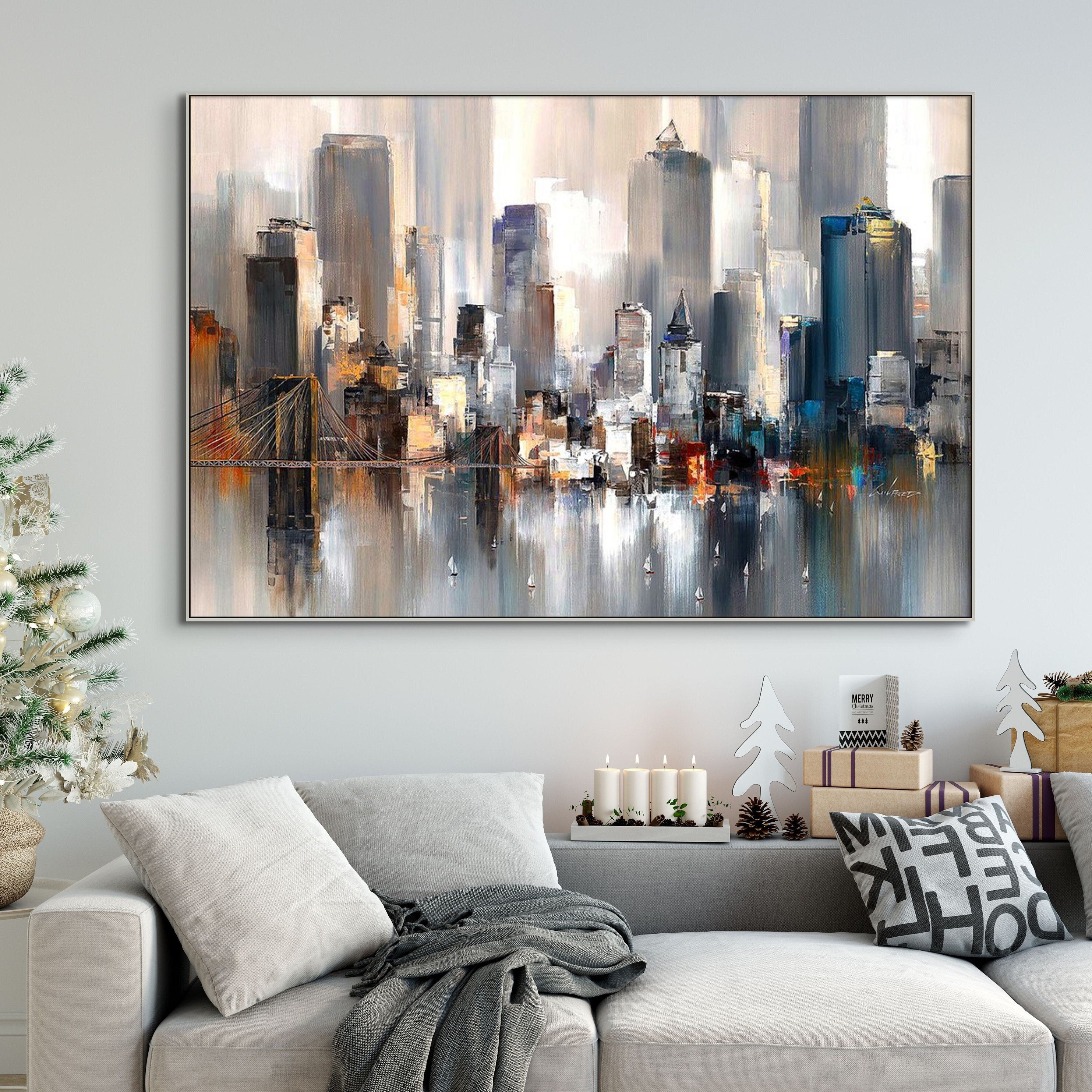 Immerse yourself in the vibrant energy of Manhattan with our exquisite City Painting Large Wall Art. This hand-painted canvas art captures the essence of the bustling cityscape, offering a unique blend of abstract artistry and urban allure. As a statement piece of art, this city landscape painting is not just a visual treat but a testament to the creativity and original art.