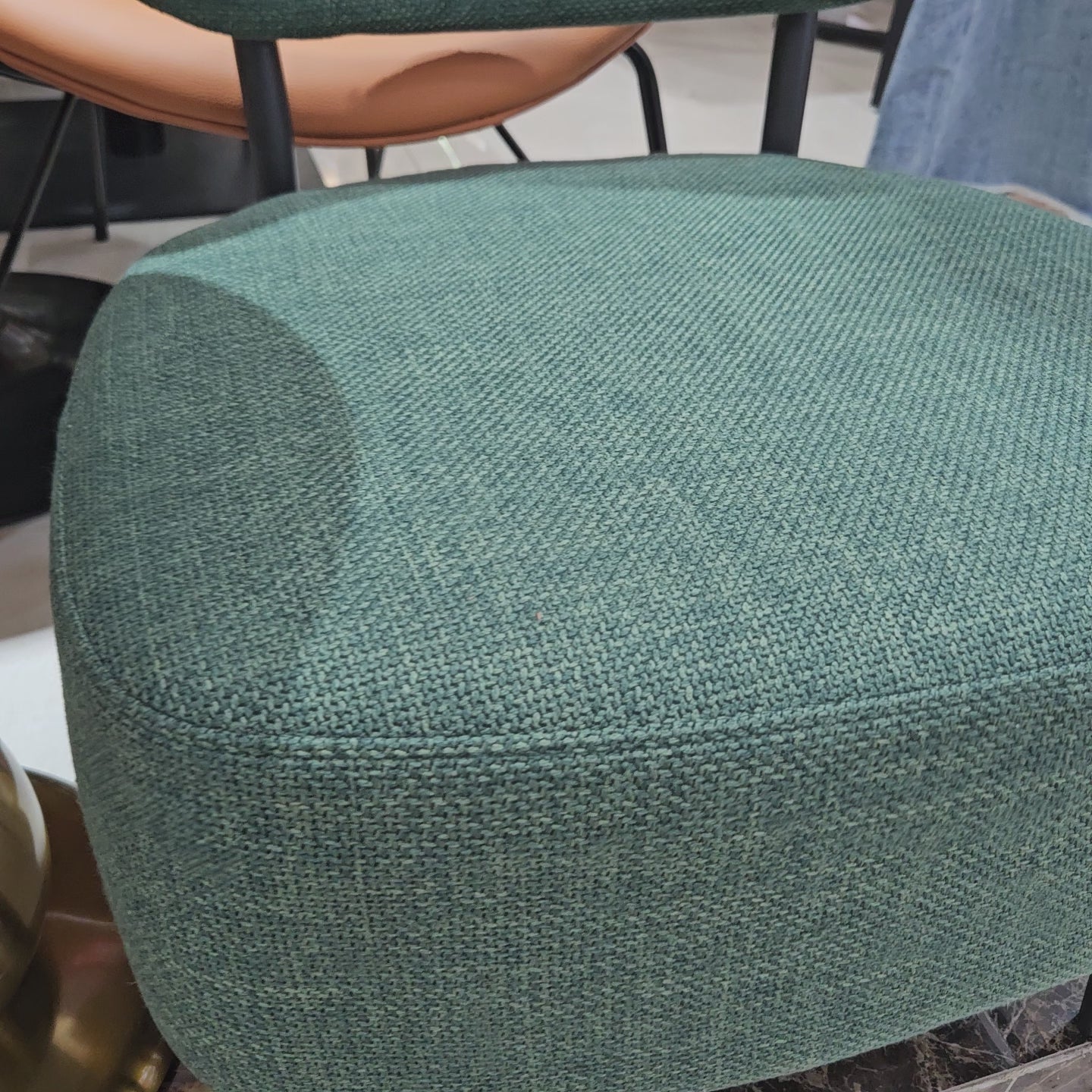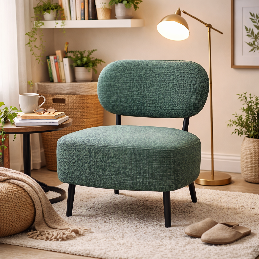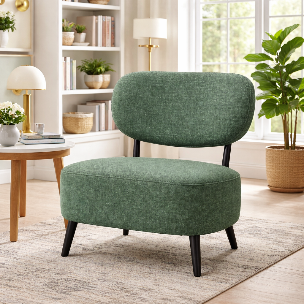 Accentuate your living space with this striking green accent chair. Designed with a nod to mid-century aesthetics, this chair combines a bold, energetic color palette with a compact, low-profile silhouette. Whether you’re looking to anchor a cozy reading nook or add extra seating to a lounge, these chairs offer the perfect blend of artistic flair and reliable comfort. The textured fabric is soft to the touch yet durable enough for daily use, while the sturdy black tapered legs provide a grounded, modern contrast.