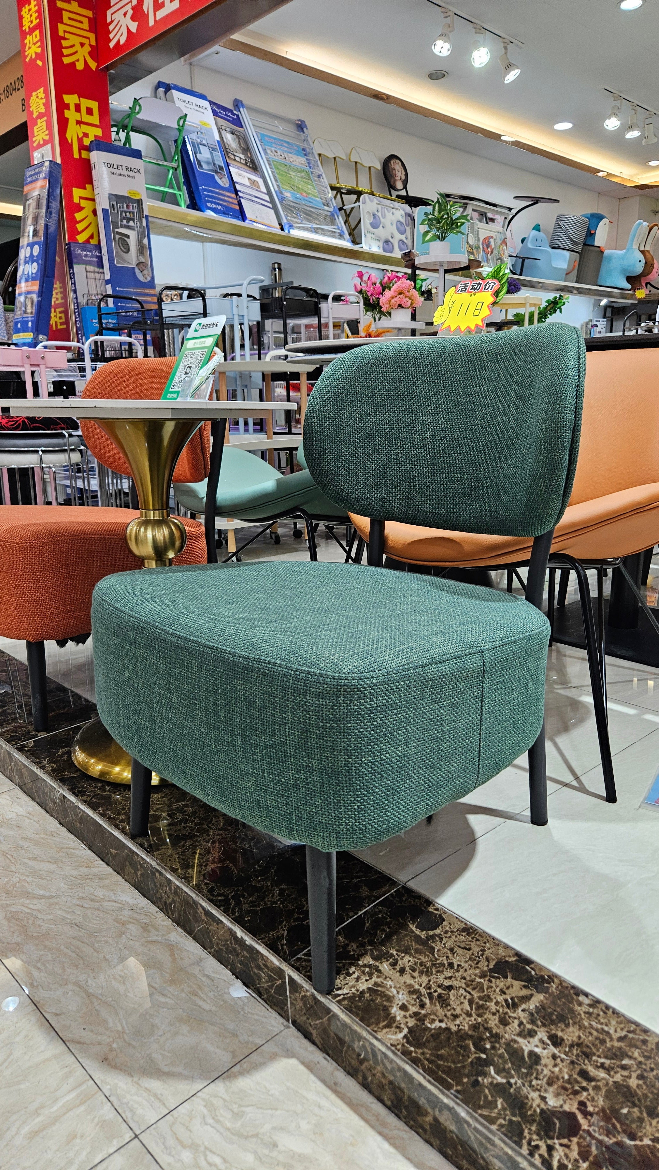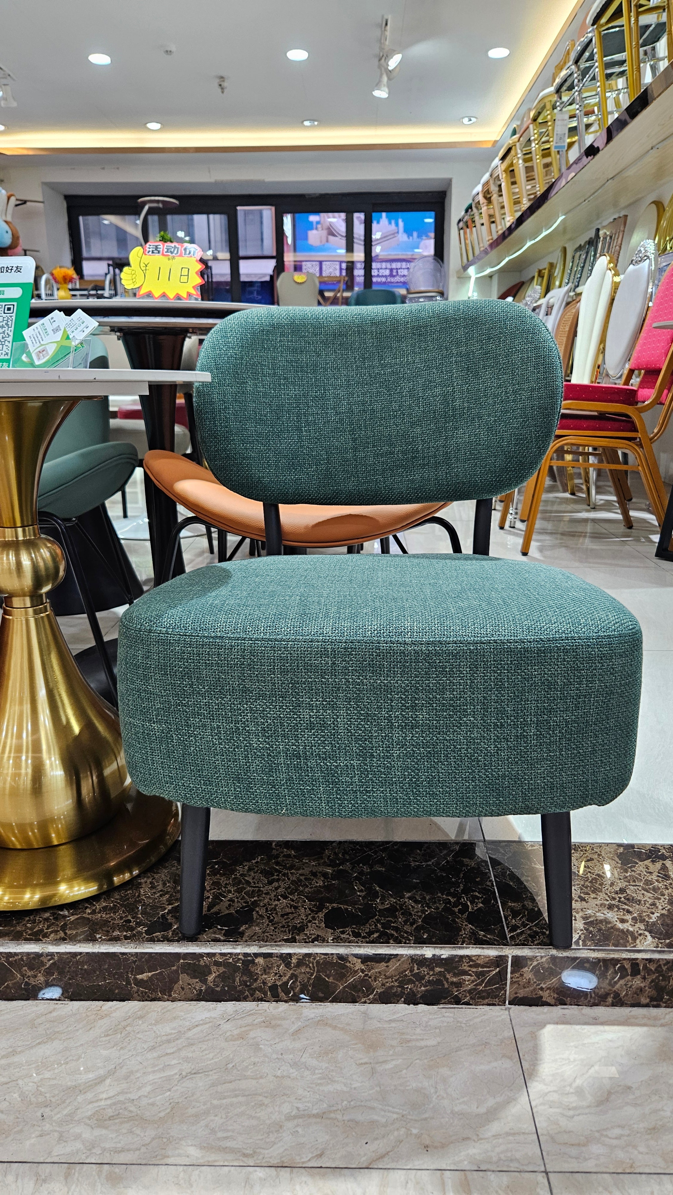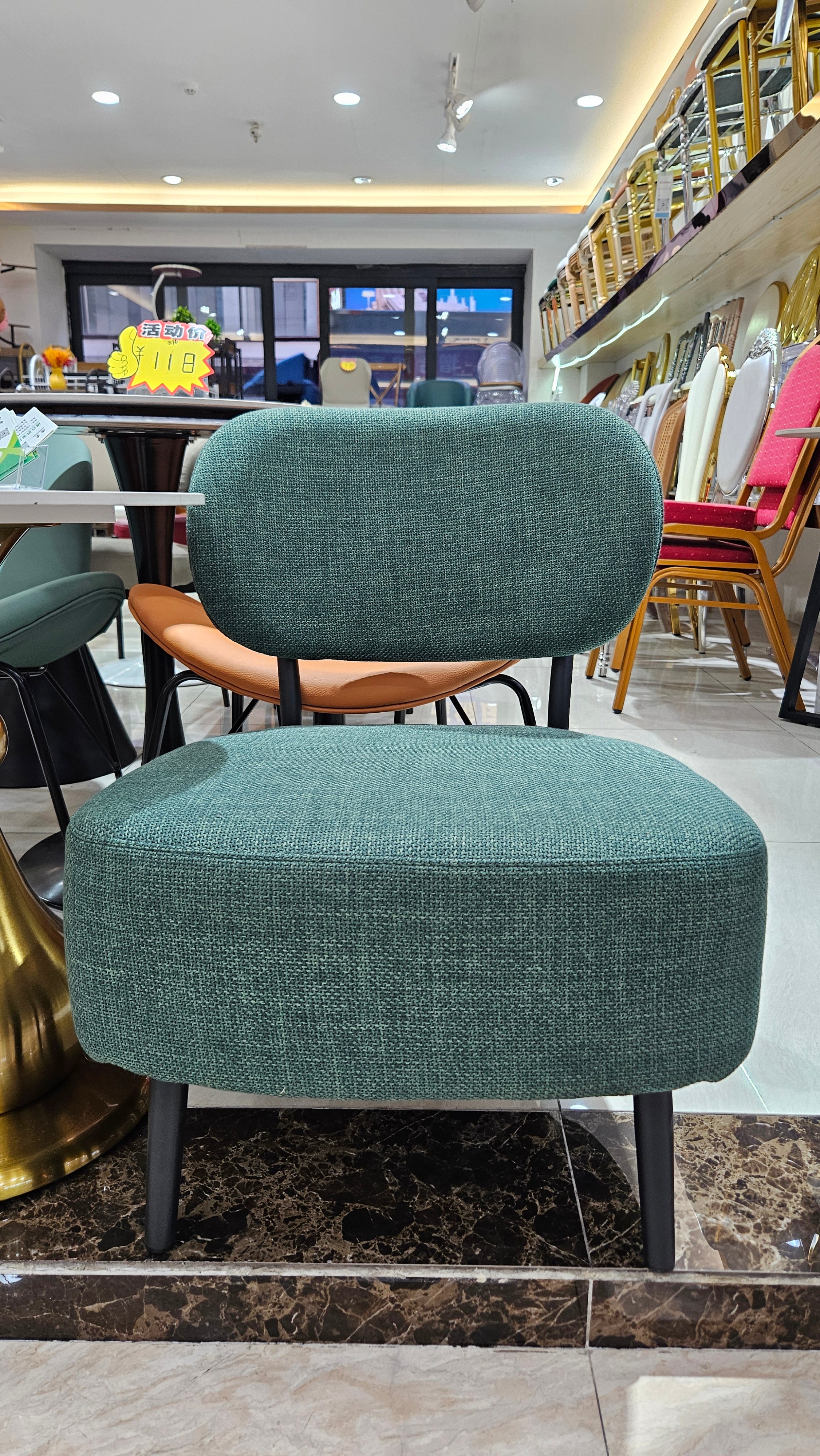Accentuate your living space with this striking green accent chair. Designed with a nod to mid-century aesthetics, this chair combines a bold, energetic color palette with a compact, low-profile silhouette. Whether you’re looking to anchor a cozy reading nook or add extra seating to a lounge, these chairs offer the perfect blend of artistic flair and reliable comfort. The textured fabric is soft to the touch yet durable enough for daily use, while the sturdy black tapered legs provide a grounded, modern contrast.