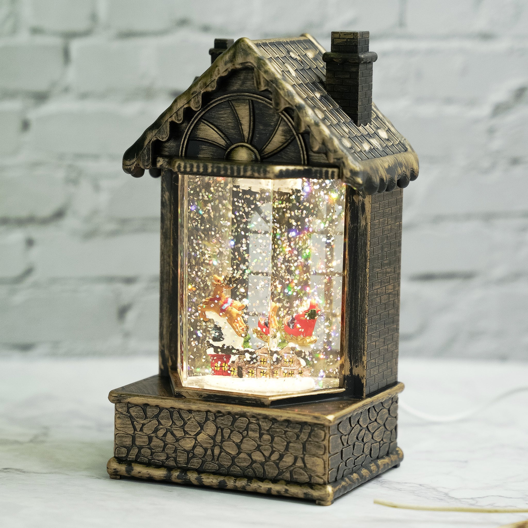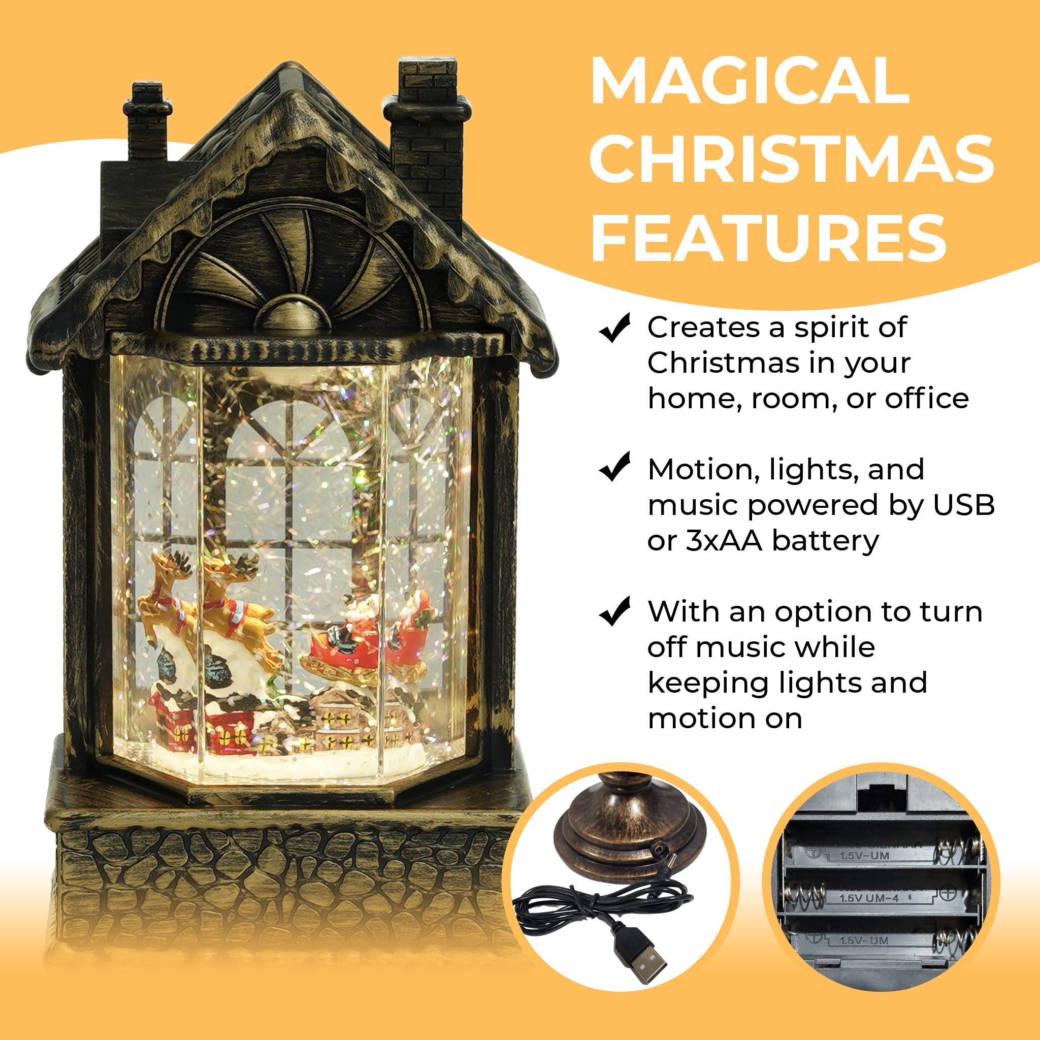 Magical Christmas Snow Globe House with LED Lights and Music, Santa with Reindeer and Gifts - Unique Christmas Decor and Gift for the Holidays