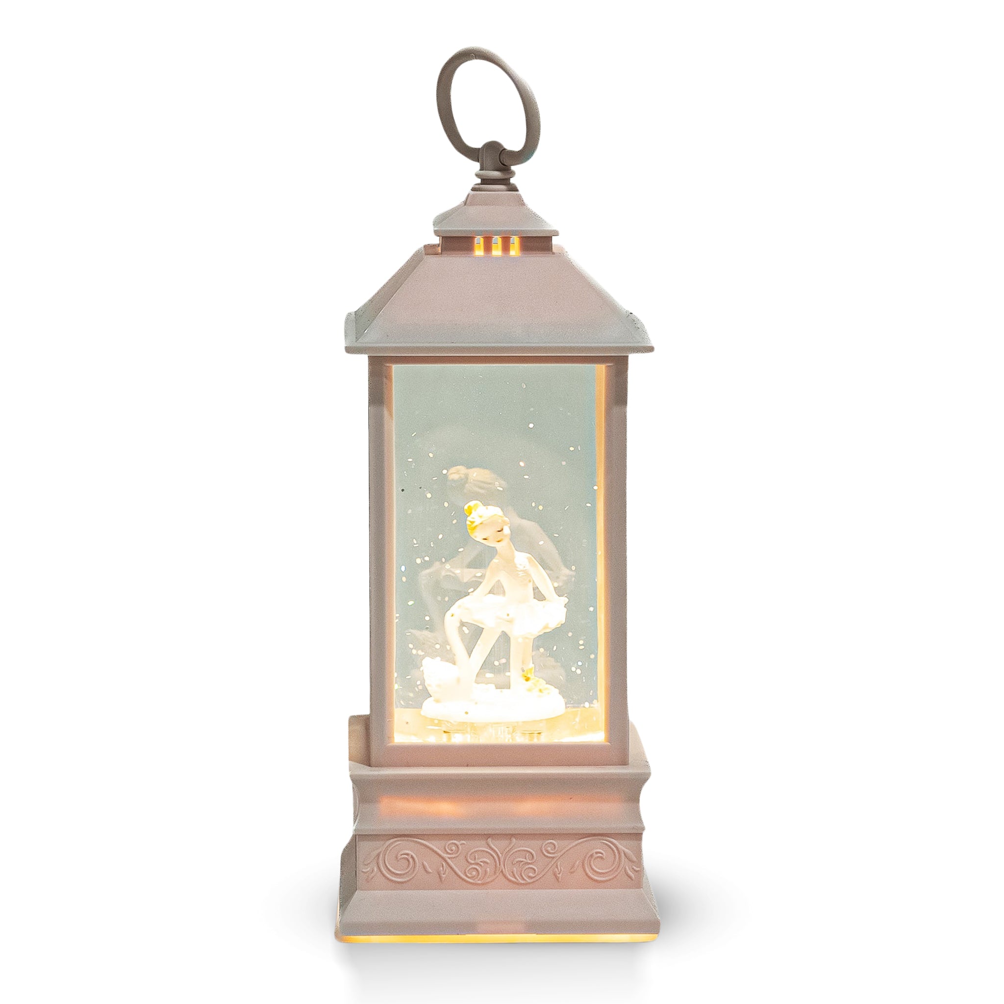 Winter Wonderland Christmas Decor, 9" Snow Globe Pink Glitter Lantern, Gift