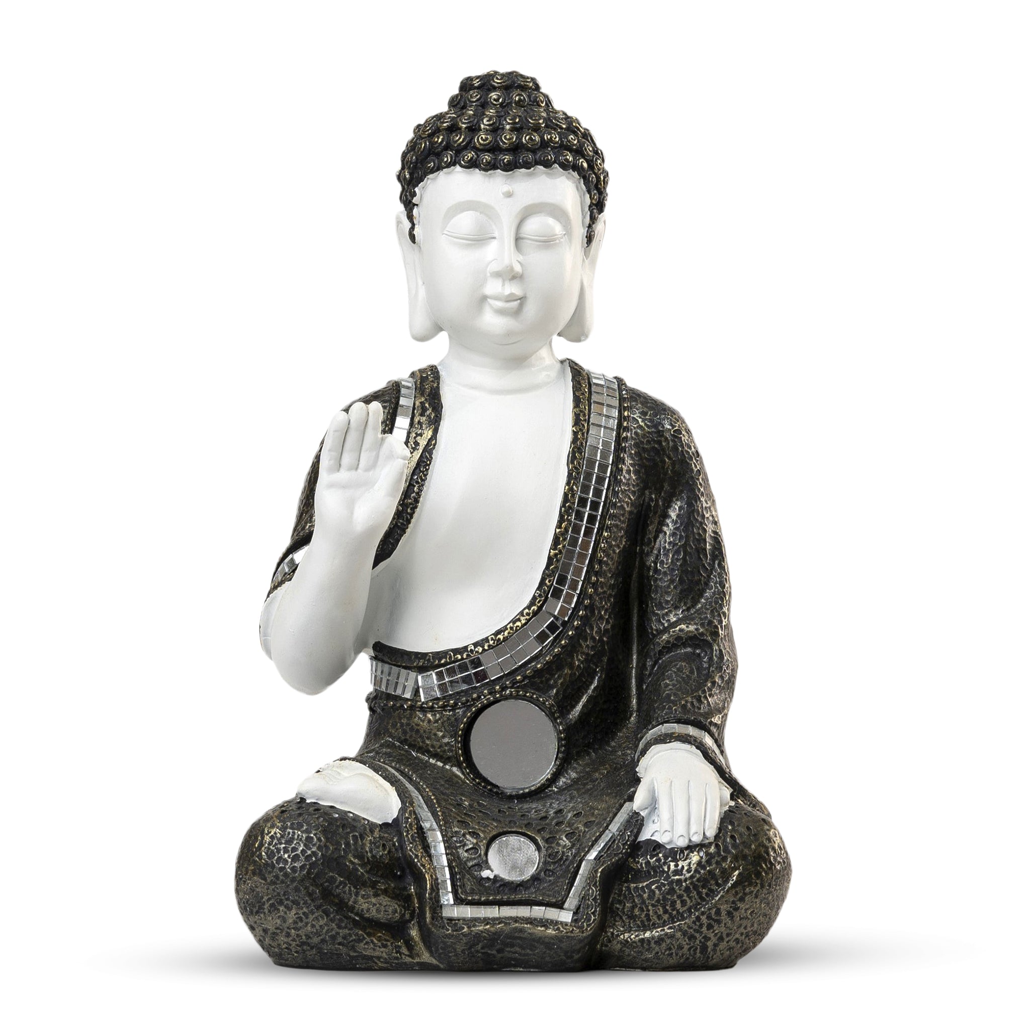 Small Buddha Statue, Antique White Decor, 10" Altar Meditation Room Decor
