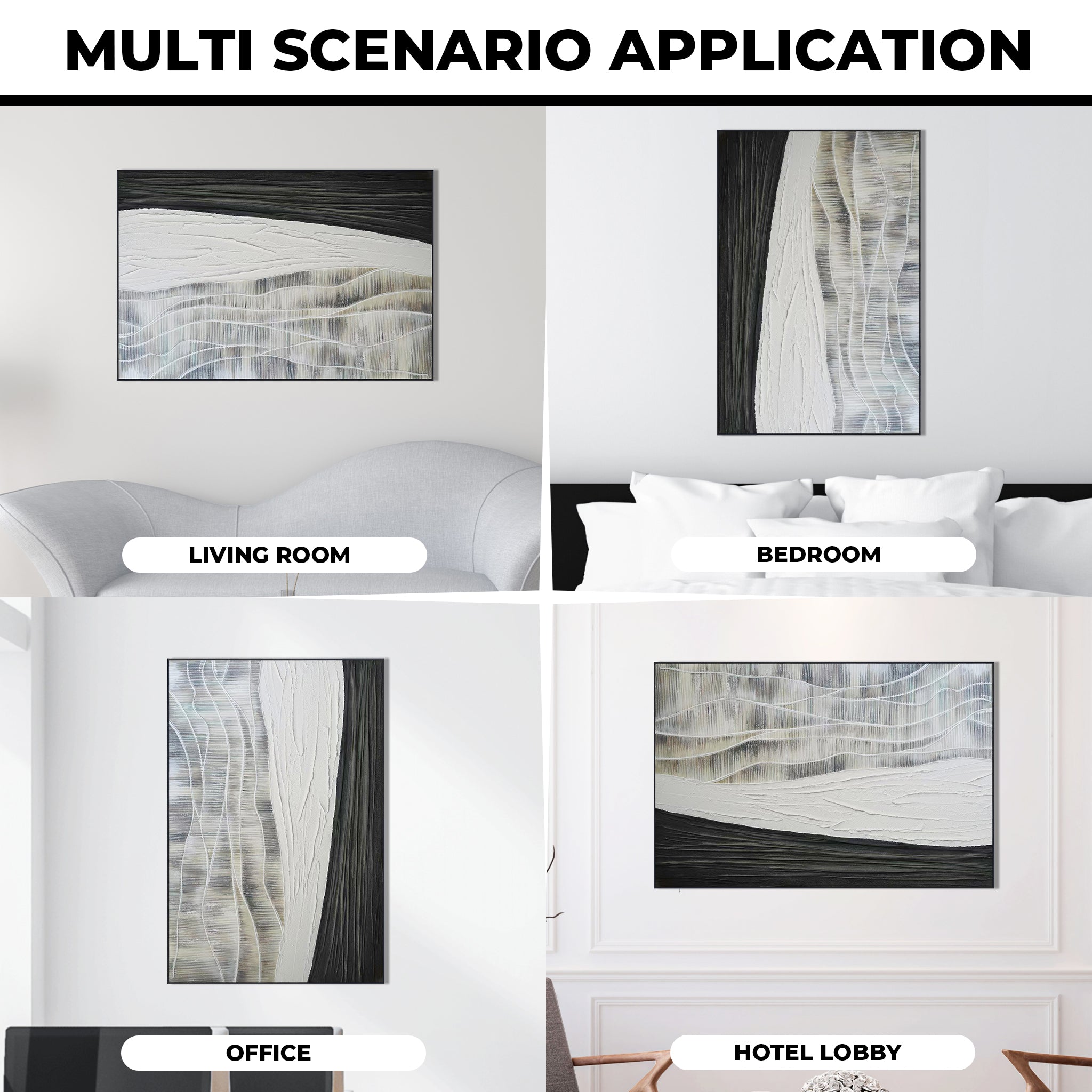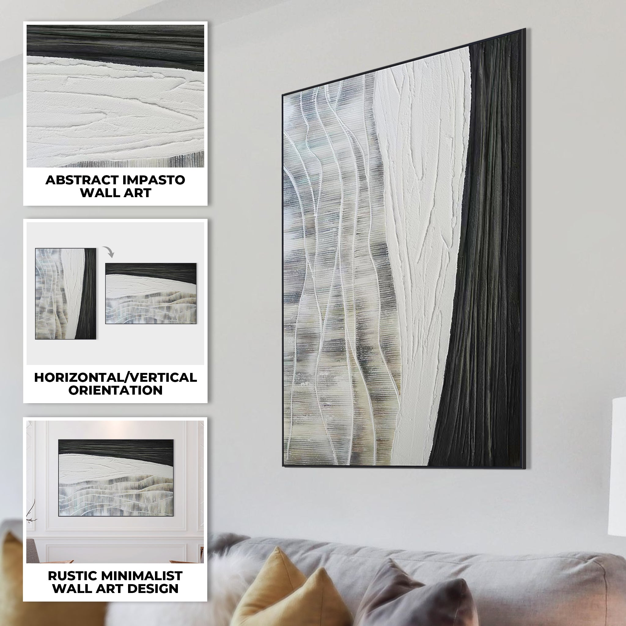Introducing the Gray Black Abstract Textured Impasto Painting, a captivating piece of framed wall art that adds a modern touch to any space. Measuring 47 inches, this artwork showcases a striking blend of gray and black tones in an abstract design, brought to life with a textured impasto technique. The thick, layered strokes give the painting depth and dimension, creating a visually dynamic effect that draws the eye. The minimalist color palette ensures it fits seamlessly into any room decor, from contemporary to industrial. Encased in a sleek frame, this elegant art piece is ready to elevate your home or office decor, offering a bold yet sophisticated statement. Perfect for living rooms, bedrooms, or entryways, this framed wall art will transform any wall into a stunning focal point.