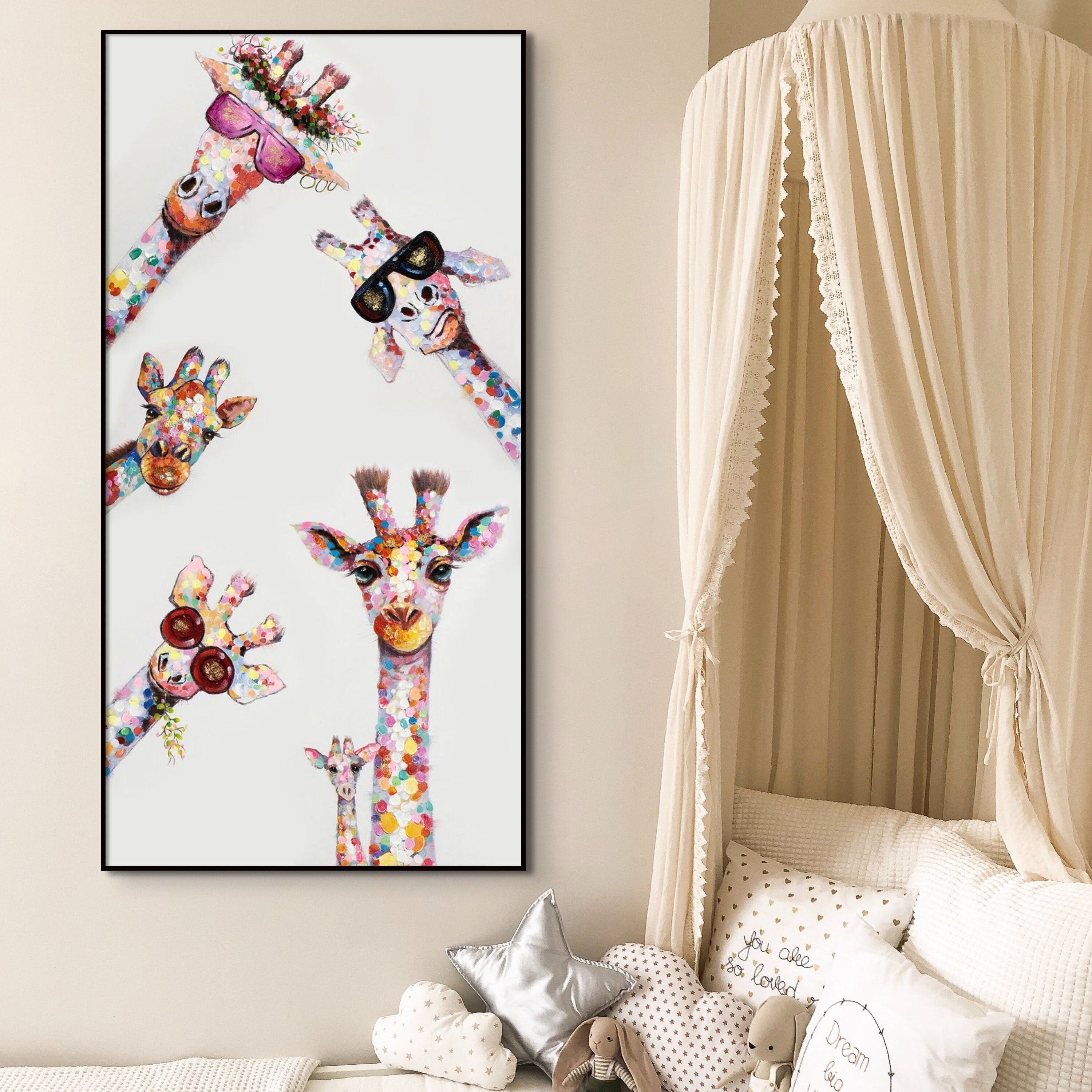 Giraffe Animal Painting On Canvas, Painting for Kids Room, Colorful Art, Nursery Decor, Wall Decor for Kids Room, Wall Painting for Playroom