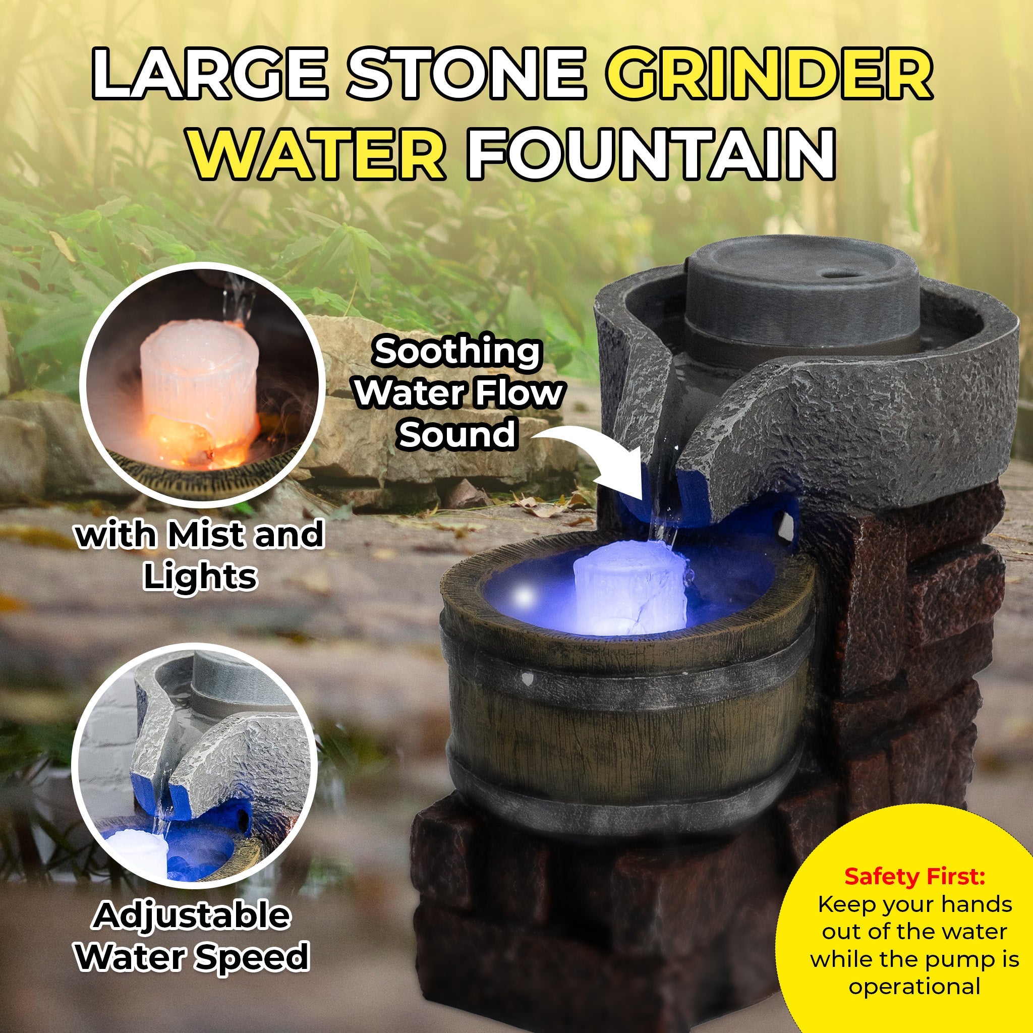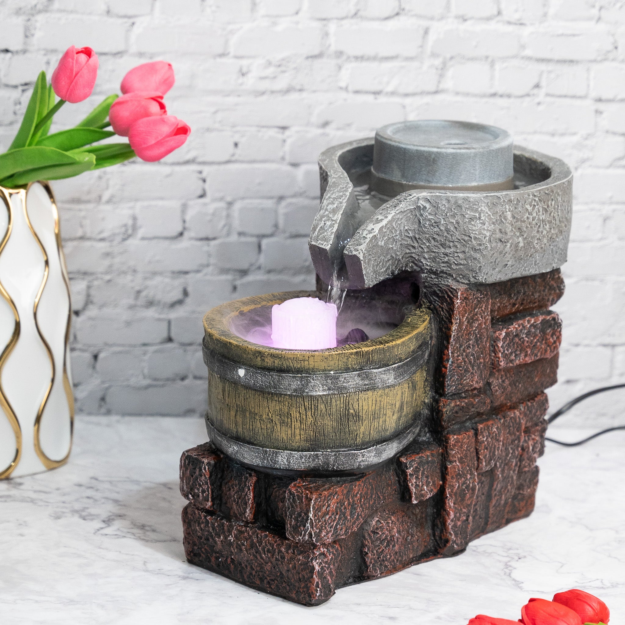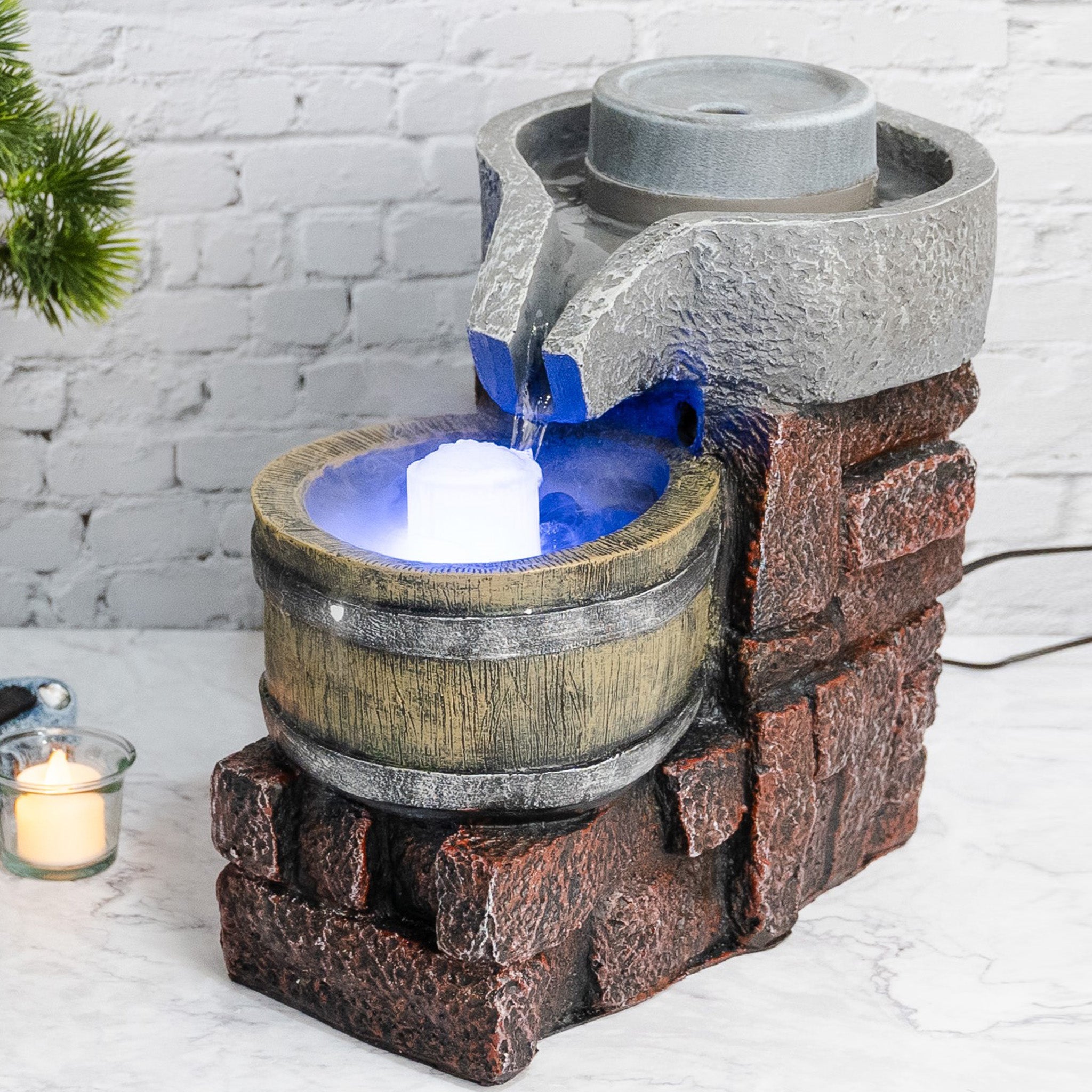 Majestic Oasis Mini Waterfall Fountain, Brown & Gray Fiberglass Polyresin, Indoor Therapy Desk Decor With Adjustable Pump, Mist, And Lights