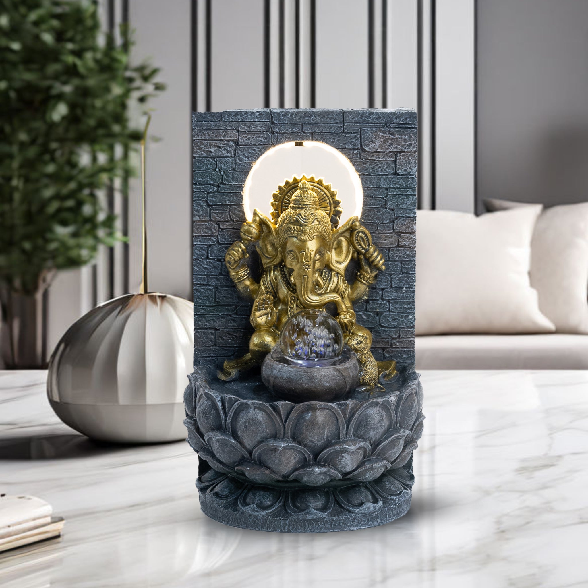Indoor Waterfall Tabletop Fountain Decor Polyresin Gray Ganesha 12 inch 31 cm