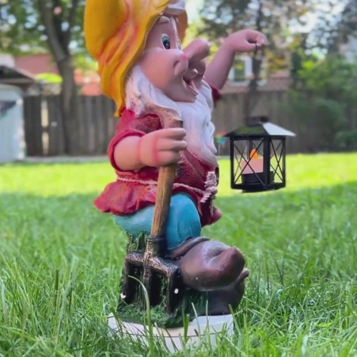 Let this Gnome Statue with Yellow Hat and Candle Holder put a smile on your face day in or day out. At 40 cm (16 inches), this charming Large Gnome Statue is sure to greet your guests with a smile. This delightful polyresin outdoor gnome features a cute and realistic expression and a vibrant yellow hat. More than just a resin garden ornament, this gnome statue for garden is a functional piece of outdoor decor. It holds a metal tealight candle holder that allows you to illuminate your pathway, entryway, garden, patio, or balcony for a warm and inviting glow, perfect for evening gatherings (2 tealight candles included). The lifelike features of this large garden sculpture bring smiles and delight to your guests! Not only that - the vibrant colors of this yard art complements the colorful garden flowers and lush greeneries. This whimsical garden decor is a cheerful addition to your fairy garden ornaments. Perfect as a yard and garden decor, it's sure to spark joy to children and children at heart.
