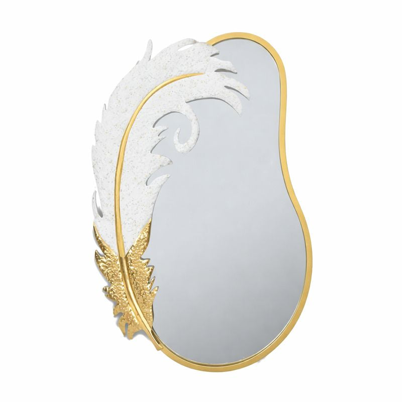 Bring a touch of Hollywood glam to your home with the Decorative Feather Design Decorative Wall Mirror. This stunning piece combines an organic, asymmetrical silhouette with a masterfully crafted metal feather overlay. The crisp white and radiant gold finish creates a sophisticated focal point that elevates any room, from modern entryways to chic glam bedrooms.