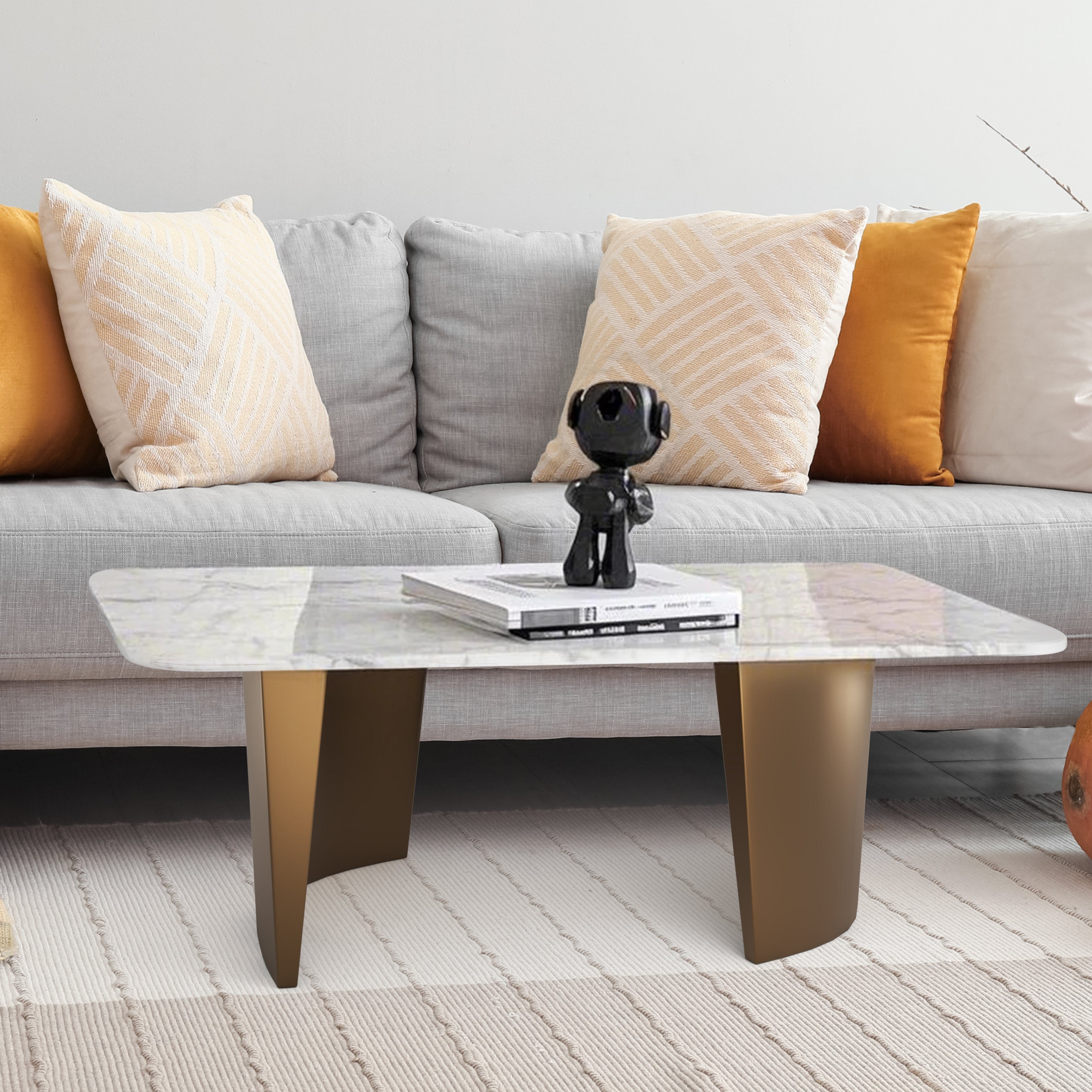 Modern 47" Rectangular Coffee Table, White Marble Surface, Metal Gold Frame, Home Decor