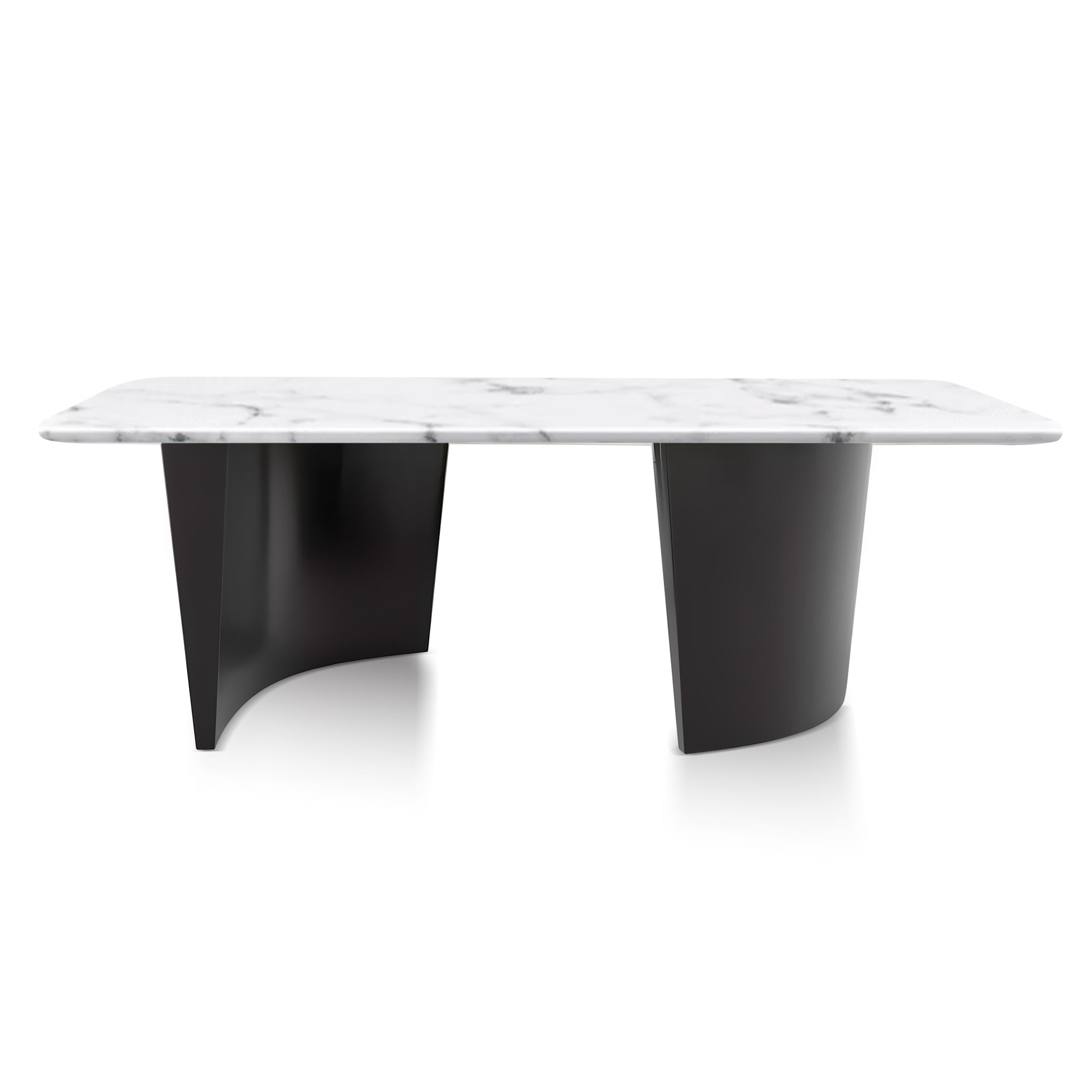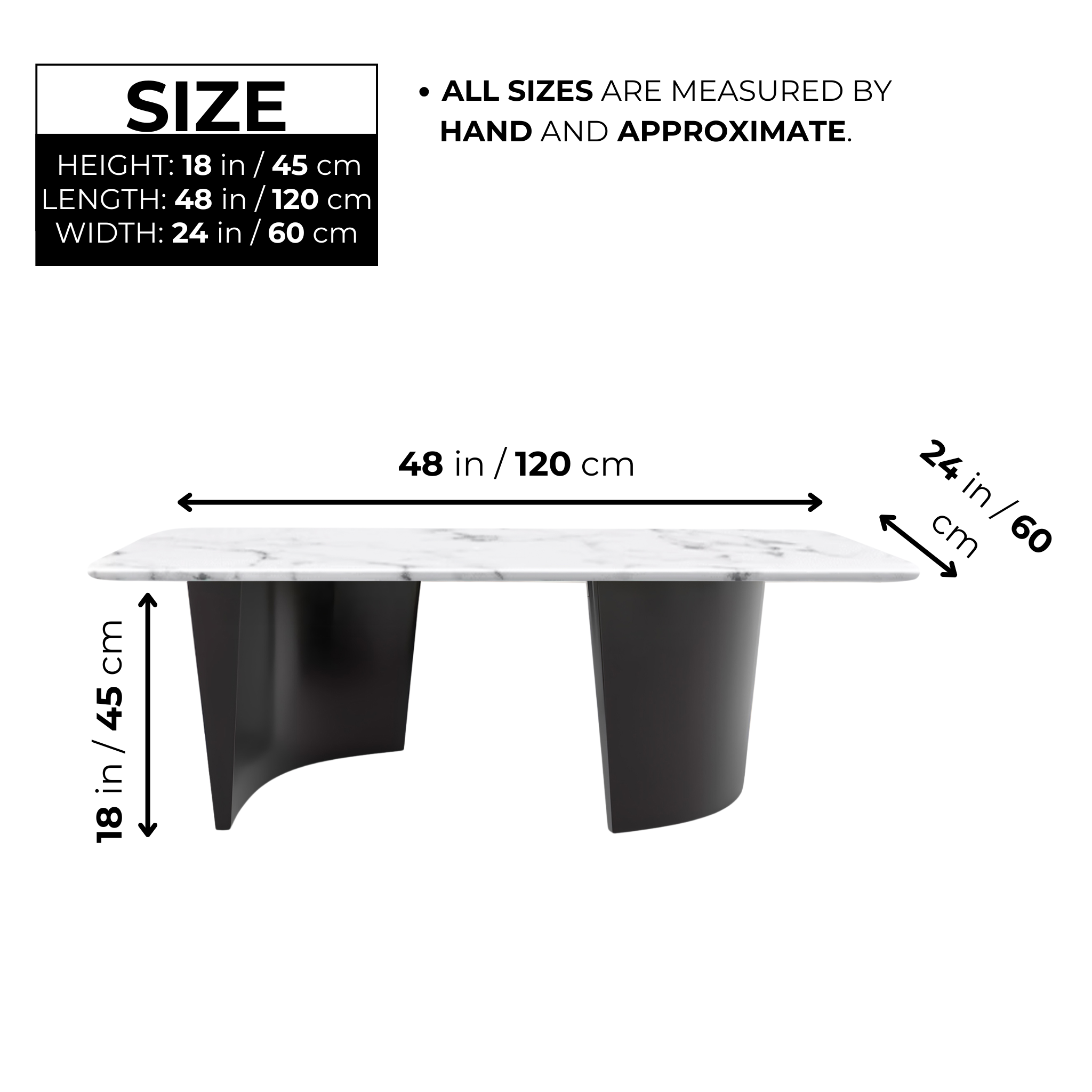 Modern 47" Rectangle Coffee Table, White Marble Top, Metal Matte Black Frame Home Decor