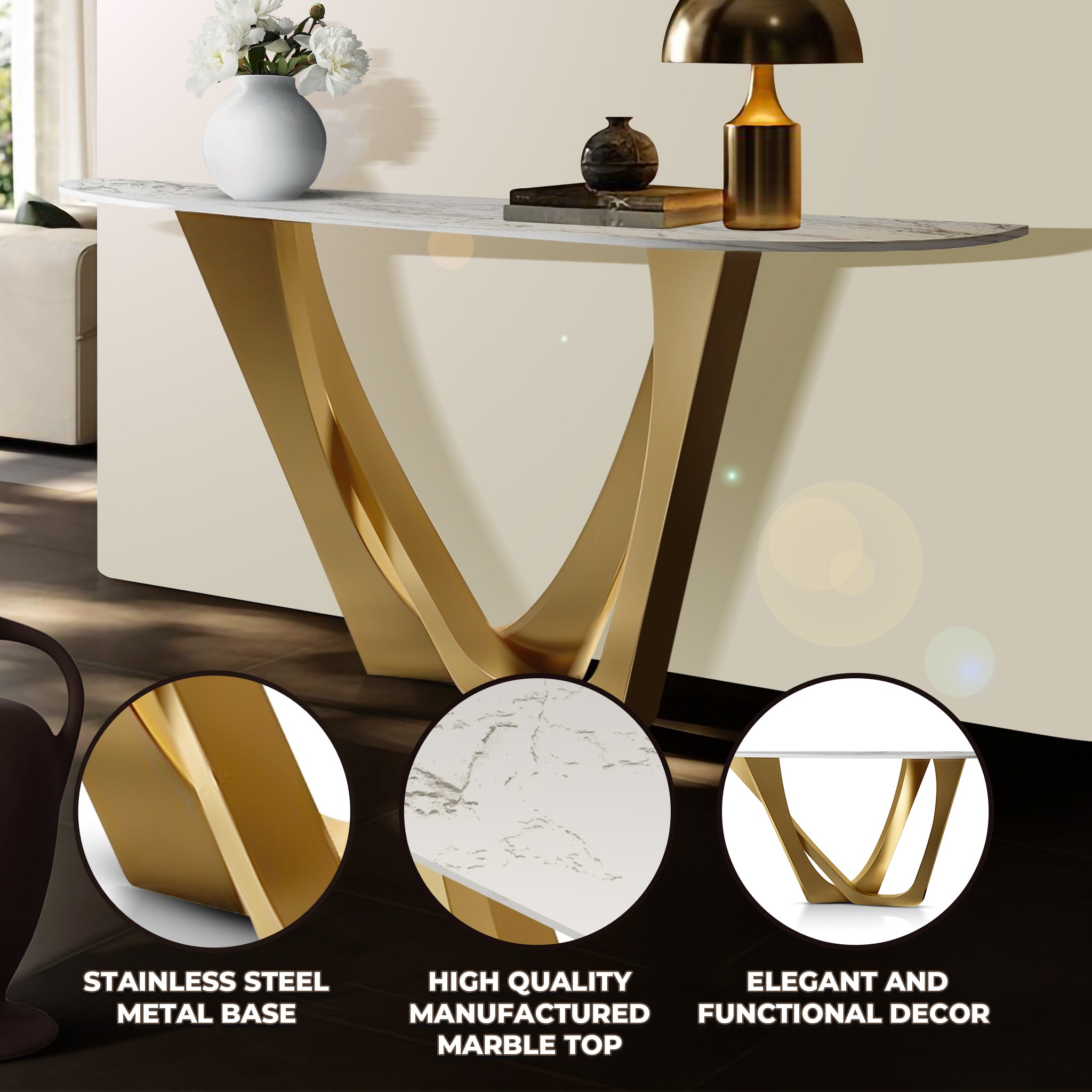 Modern 51" Golden Console Table, Premium White Marble Top Stainless Steel Metal Frame