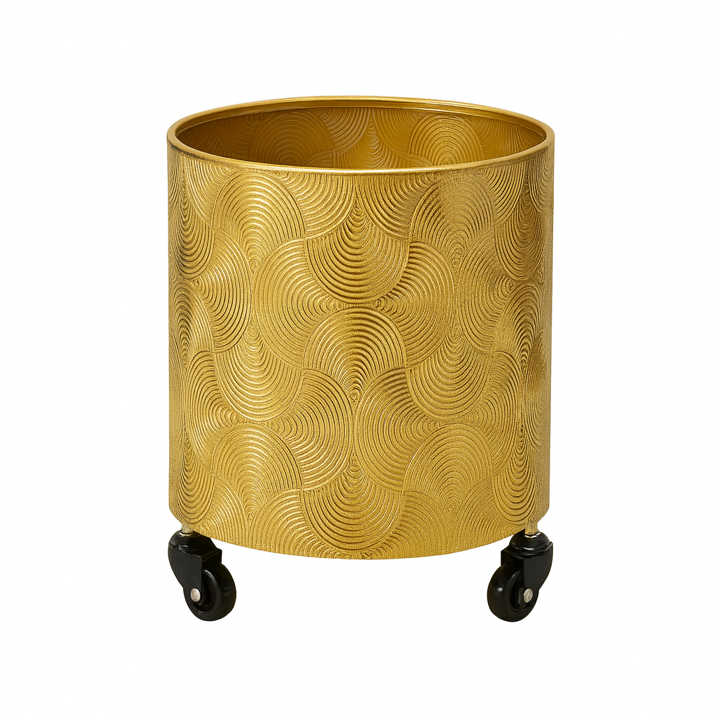 This Gold Metal Foil Planters Set offers glamour and convenience to your plant display. Featuring a radiant gold finish and built-in wheels for easy mobility, these planters are designed to combine style and functionality. Perfect for both indoor use, this set accommodates fresh plants or faux greenery - it's a versatile addition to any living room, patio, or office. The integrated drain plug ensures hassle-free watering and maintenance, keeping your plants healthy and your home clean. This pair of flower pots is also a practical gift for housewarming, xmas, and other occasions.