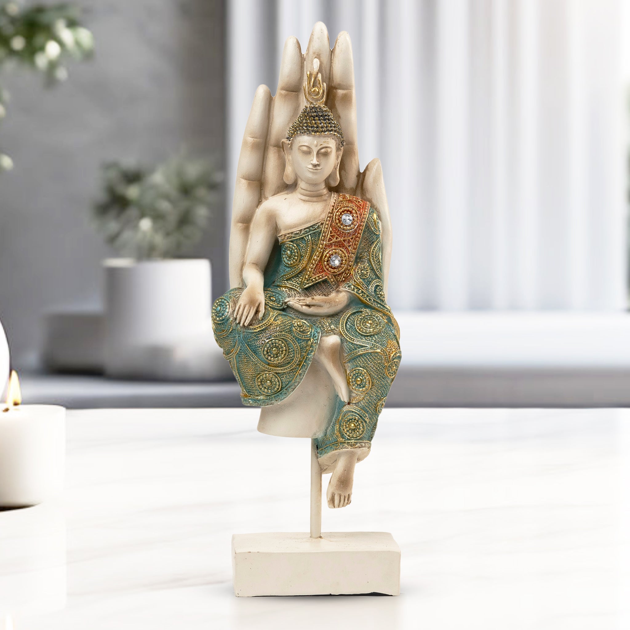 Small Buddha Statue 12" Desktop Tabletop Decor for Home, Prayer Room, Pooja, Feng Shui Good Fortune, Housewarming Gift