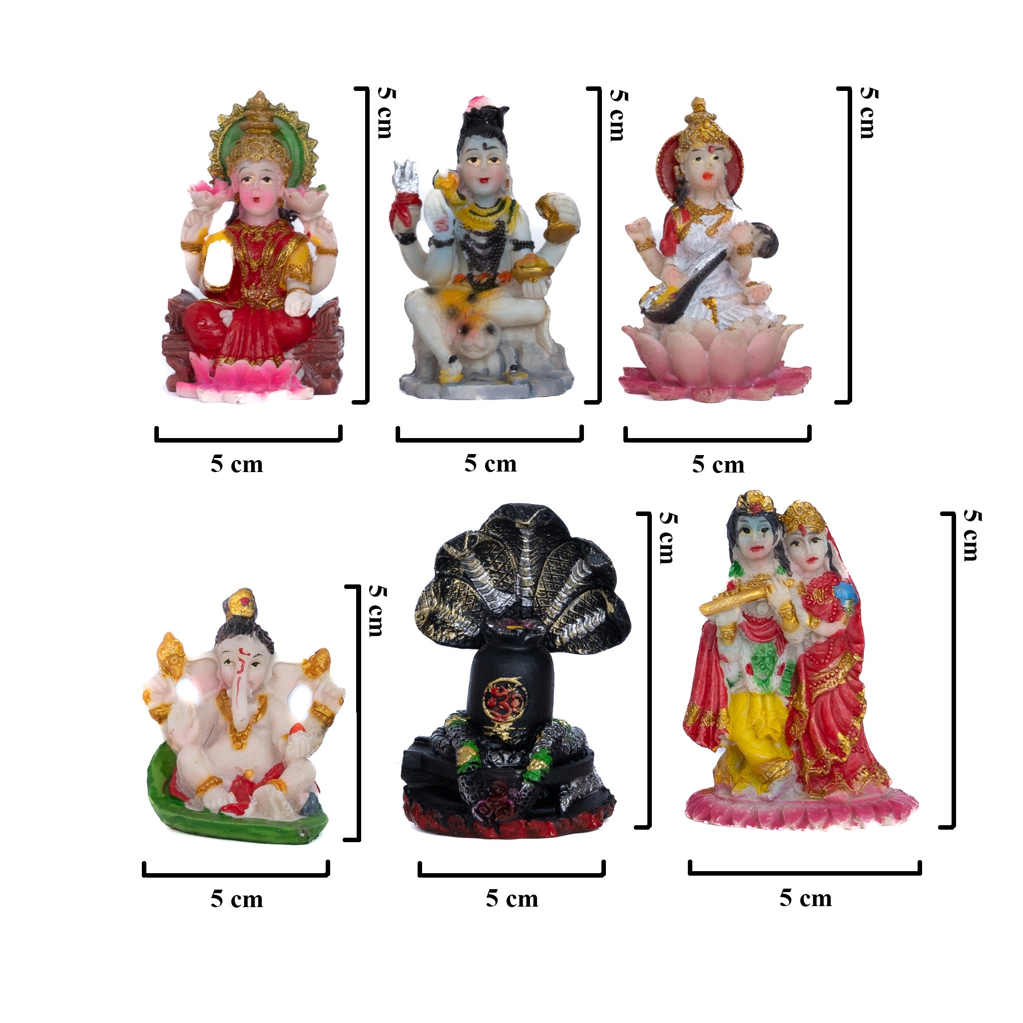 Hindu Deity Figurines Set of 6, 5" Pooja Indian Home Decor Diwali Gift