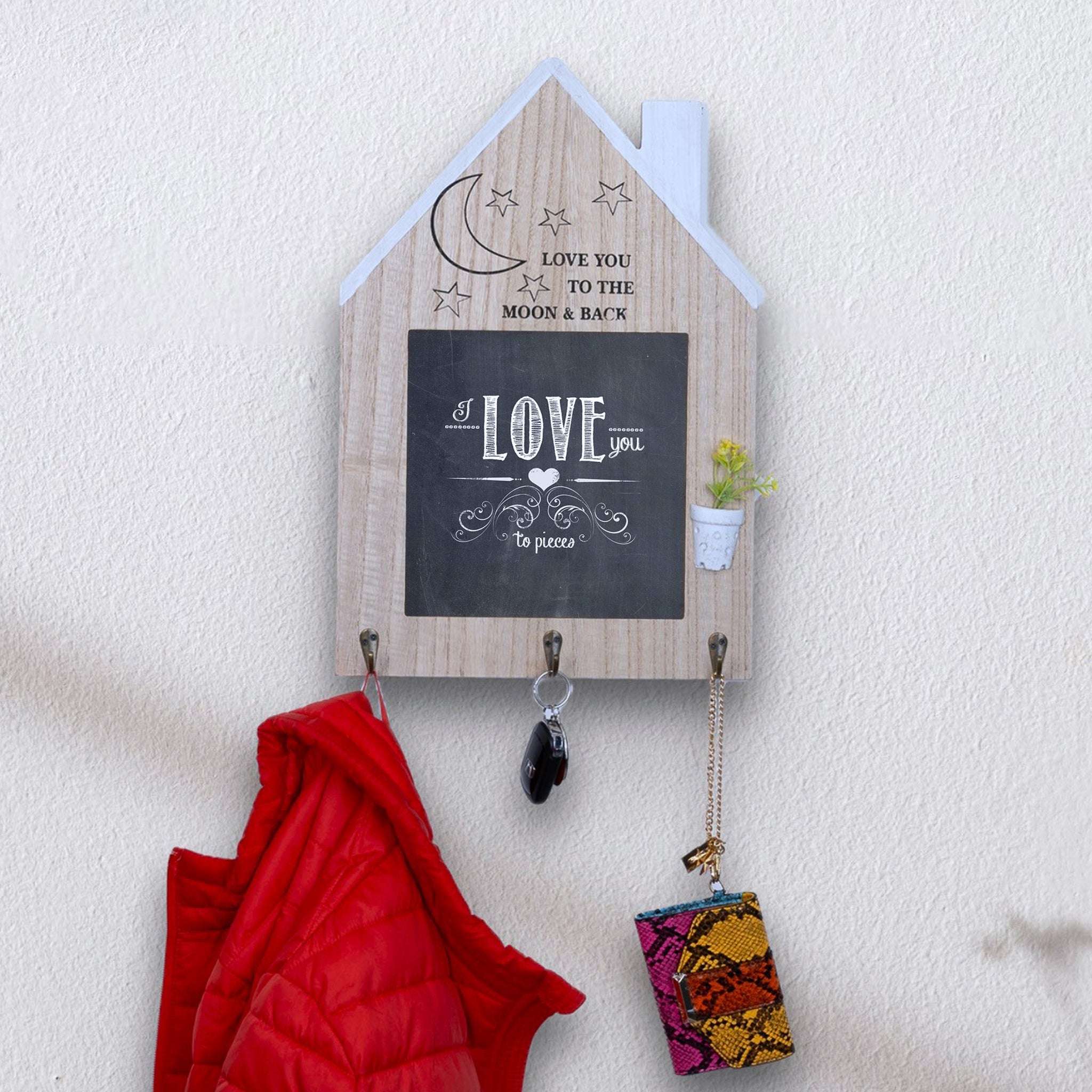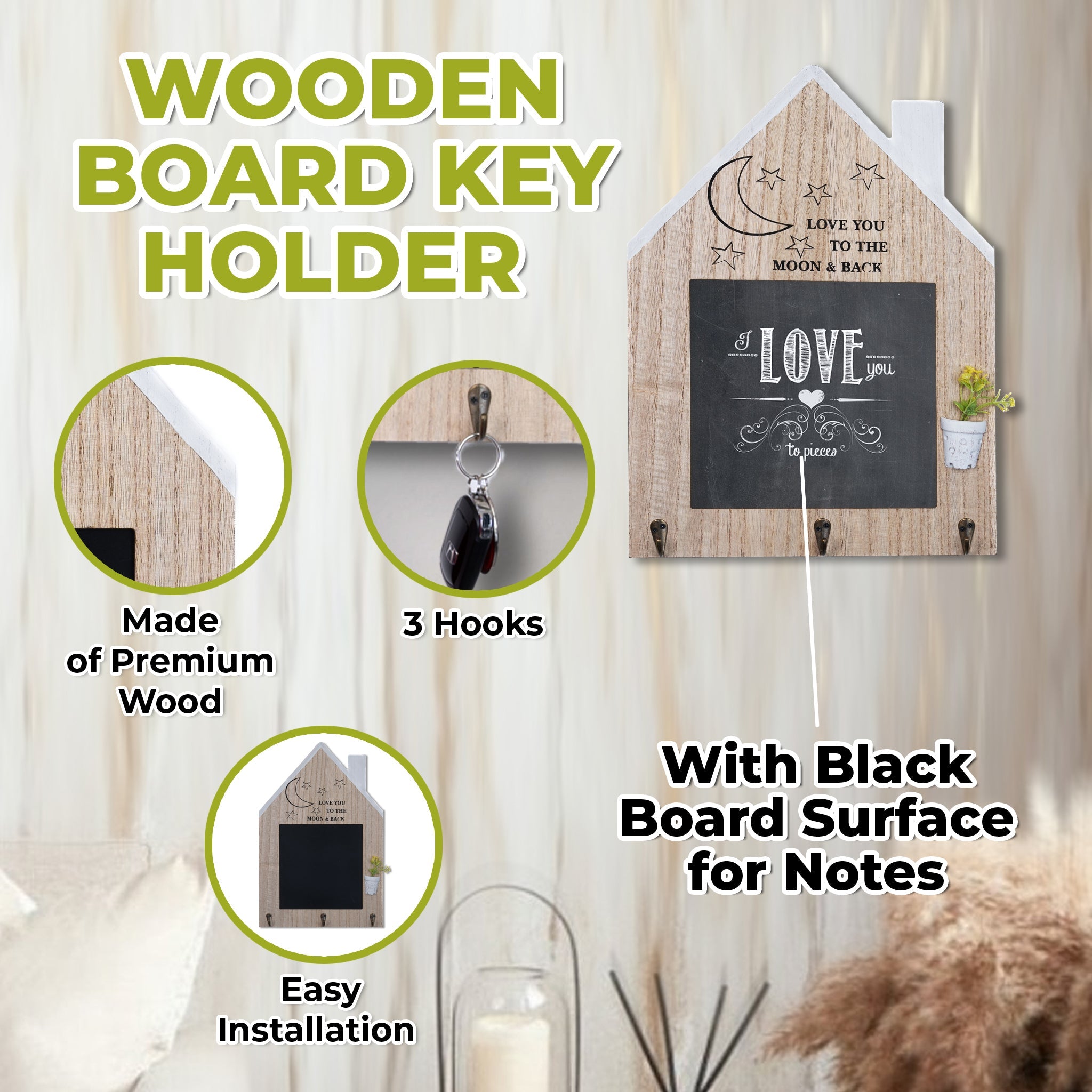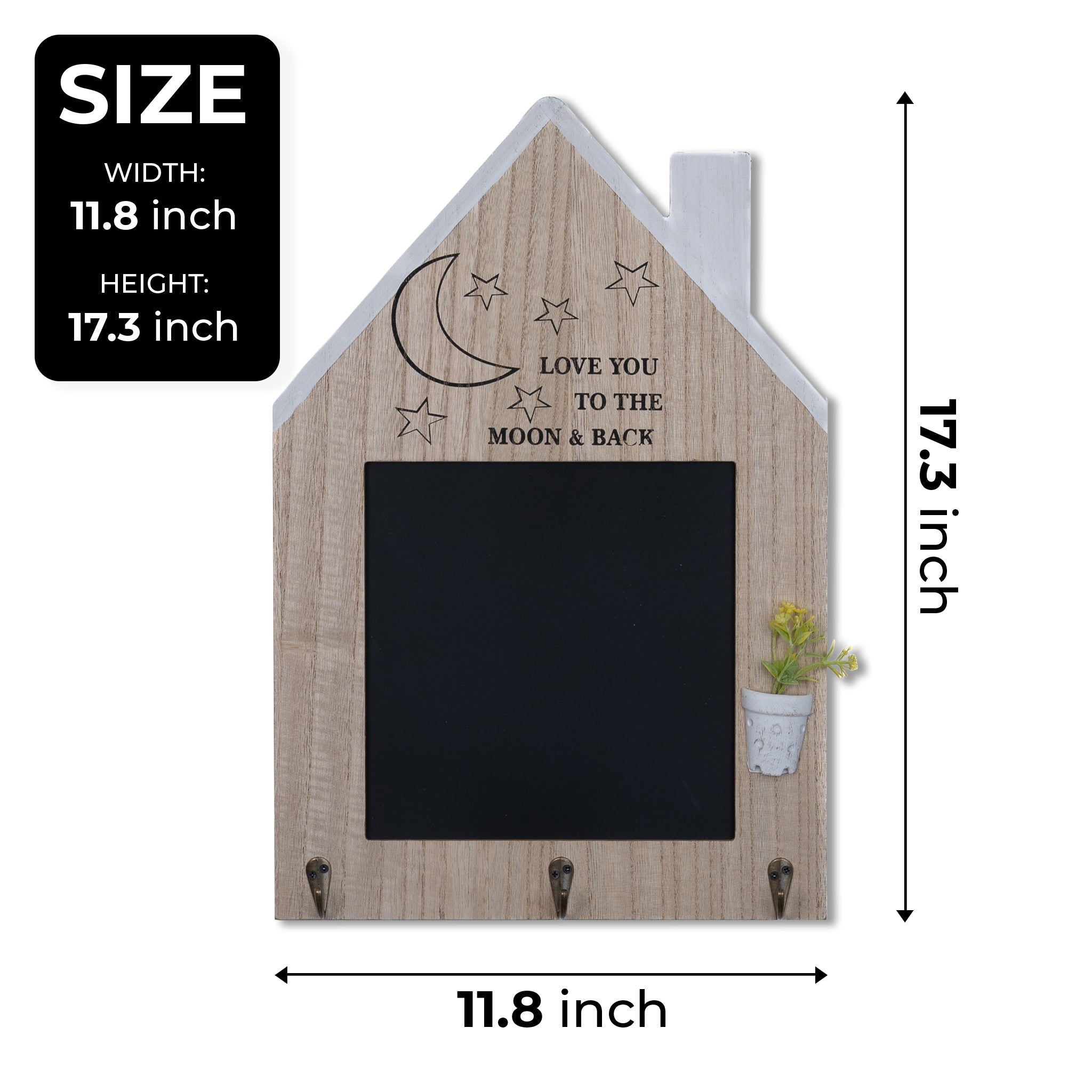 Keep your space tidy and stylish with this wooden key holder wall mount. Featuring three sturdy hooks and a built-in chalk board for notes or reminders, it’s perfect for organizing keys, jewelry, car fobs, leashes, caps, and more. The brown farmhouse design adds a warm, rustic touch to any apartment, home office, nursery, or entryway. Use it as a coat hanger, storage rack, or decorative accent near your door or in the bedroom. Functional and charming, this hanging organizer is a smart way to combine décor and convenience in one mounted piece.