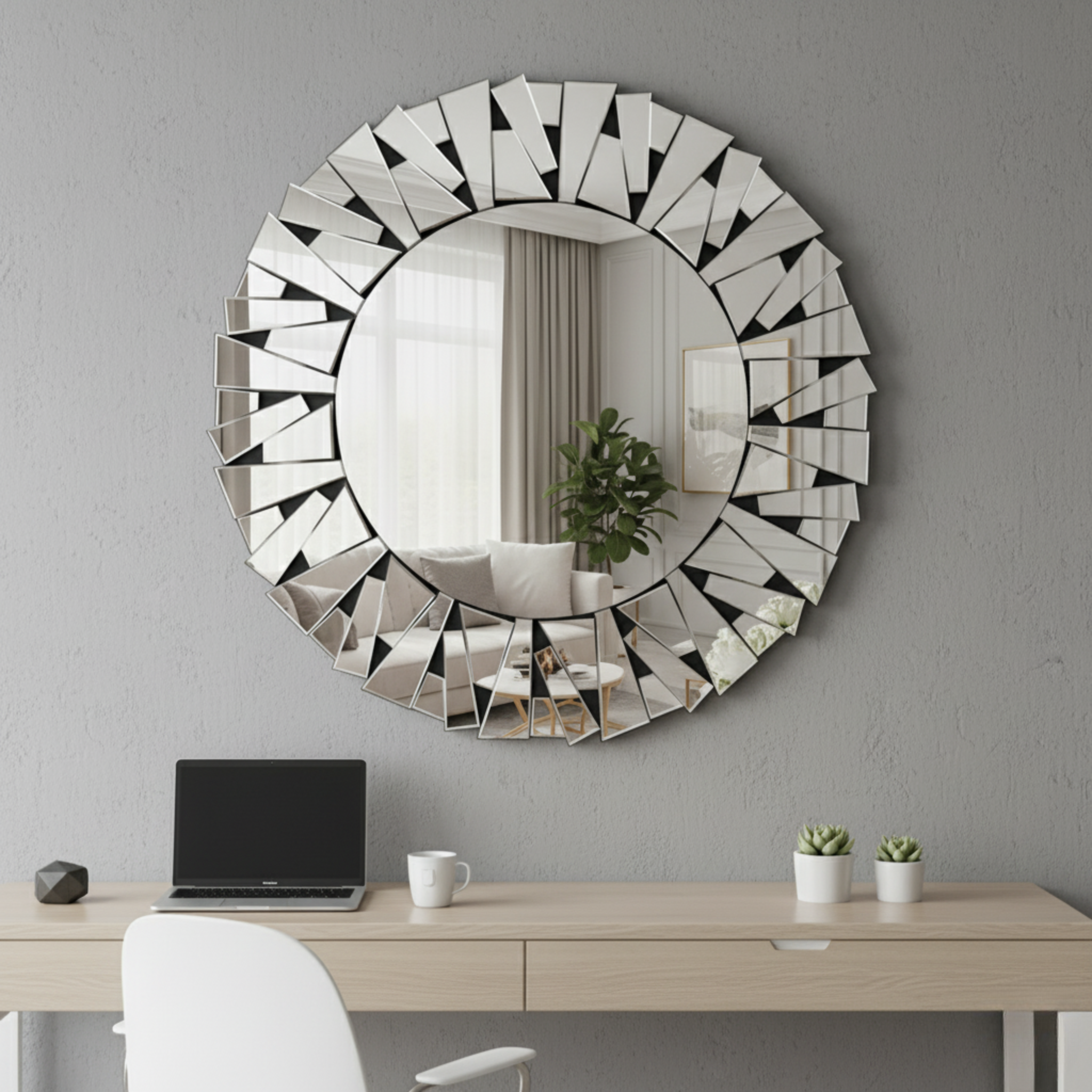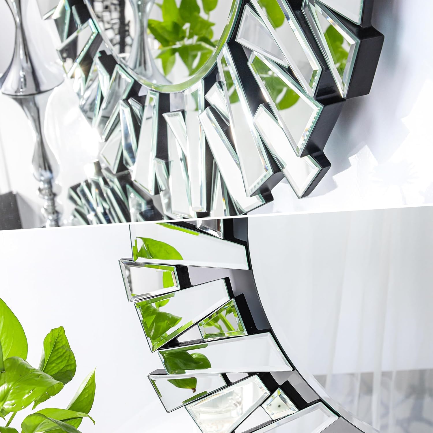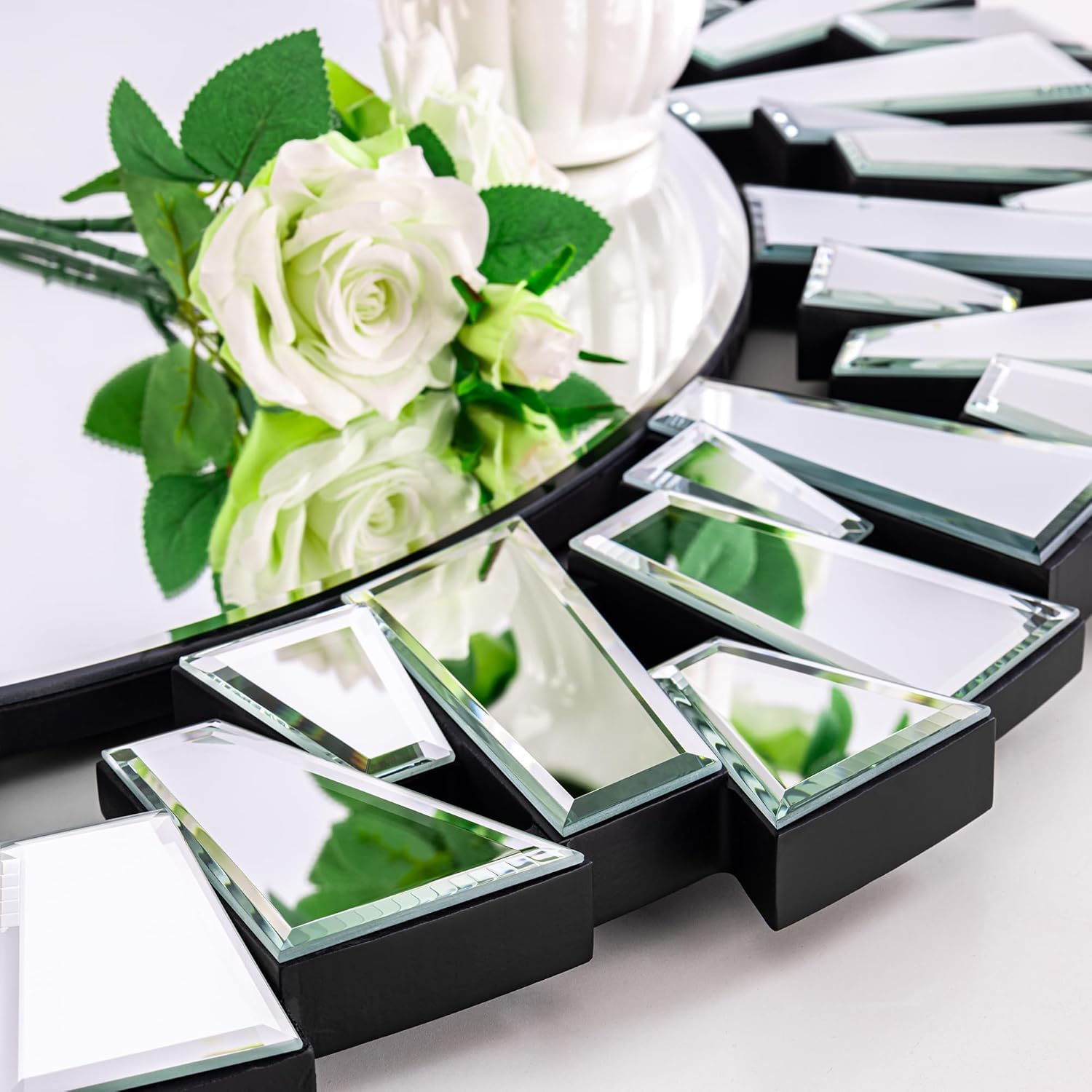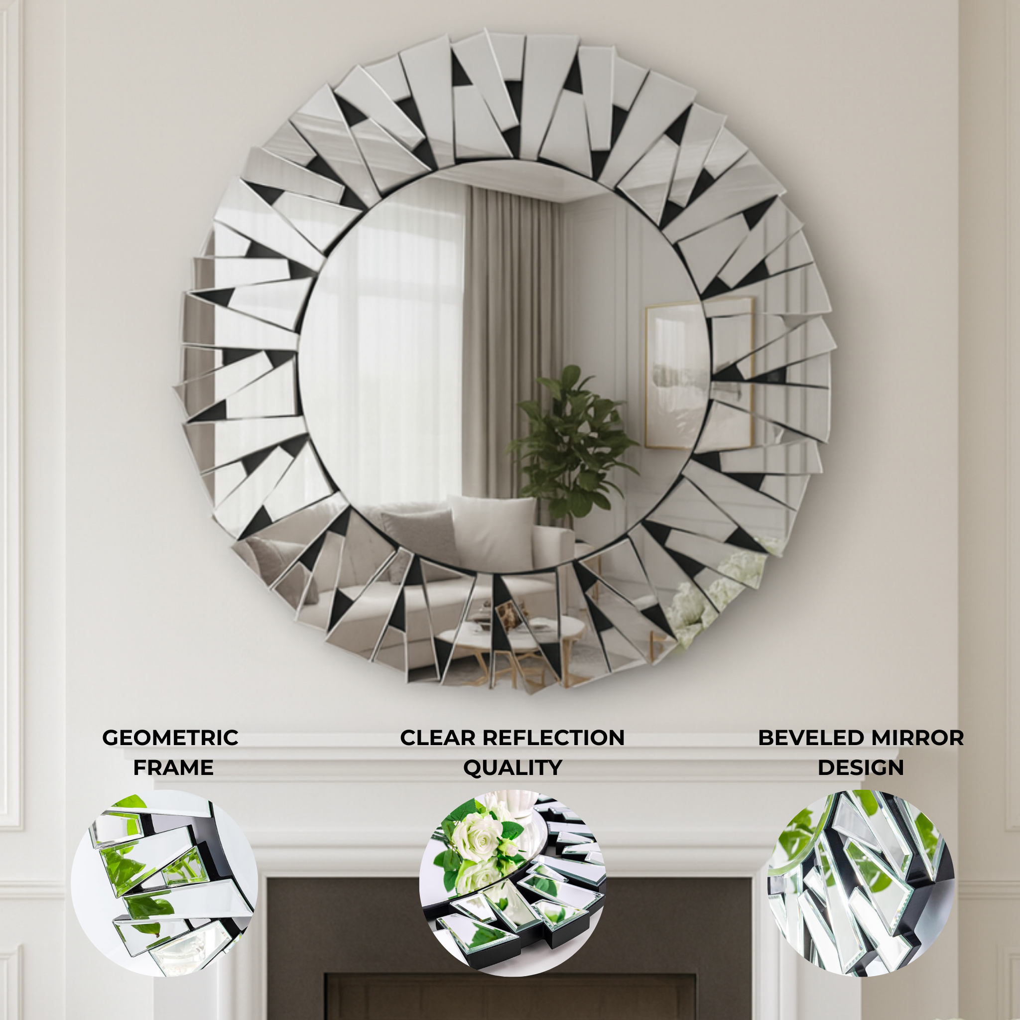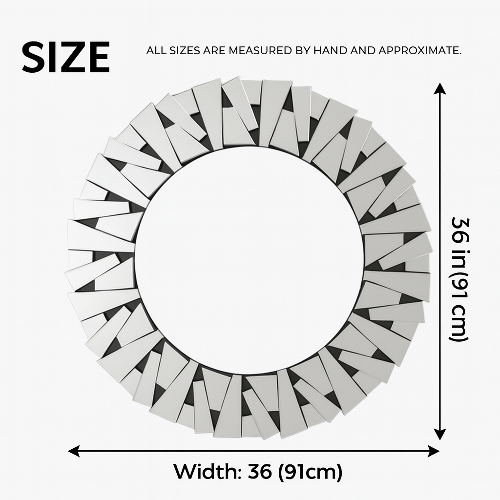 Measuring a generous 90 cm (3 feet) in diameter, this Large Frameless Glass Mirror easily enhances your indoor space. Featuring a sleek, frameless design and perfectly smooth edges, this round mirror adds a contemporary touch to your living room, home office, dining area, kitchen, bathroom, salon, shop, name it. Crafted from thick, high-quality 100% glass, it delivers crystal-clear reflections while providing durability and a premium feel.