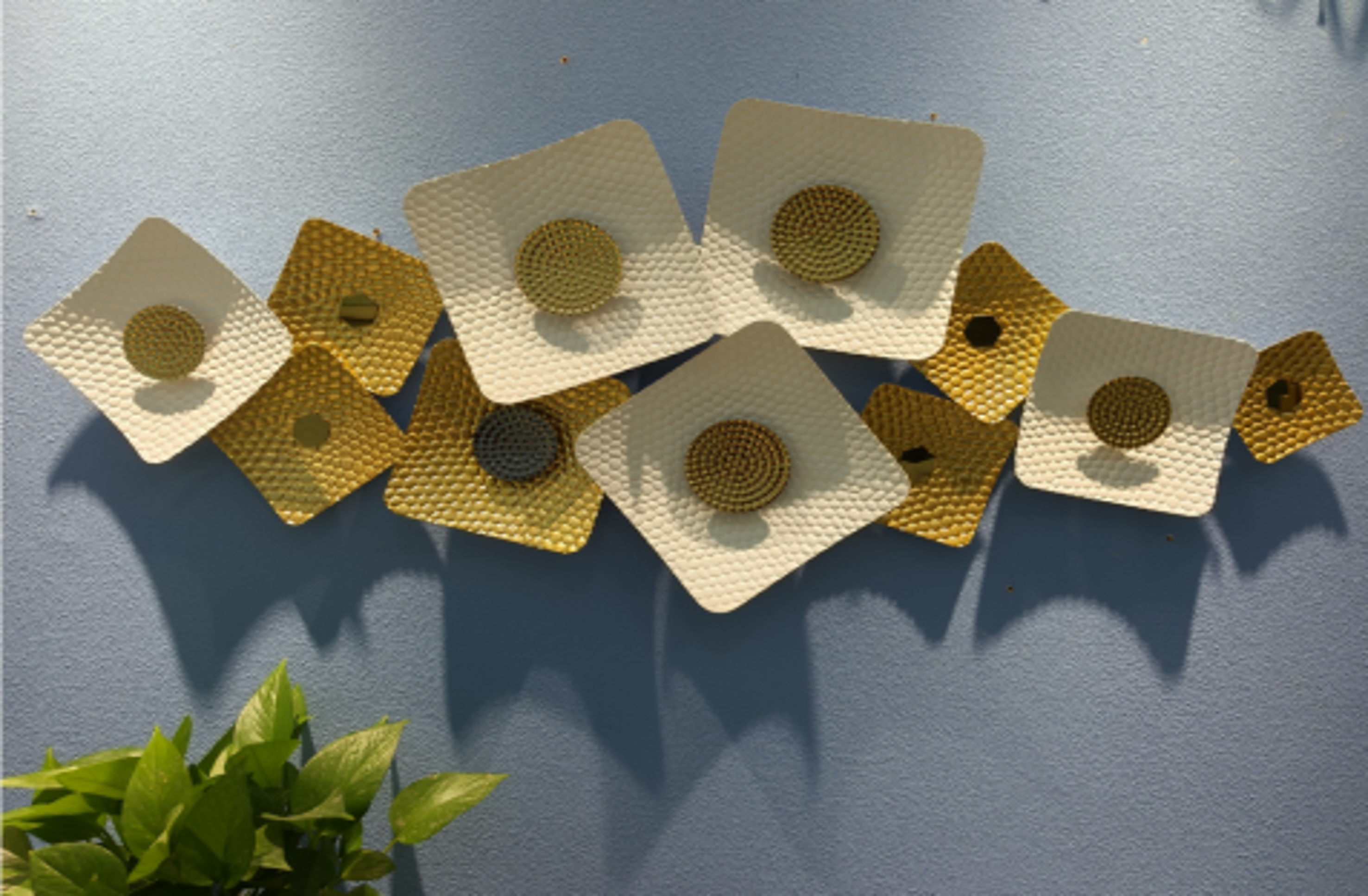 Large White Gold Metal Wall Sculpture, Modern Geometric