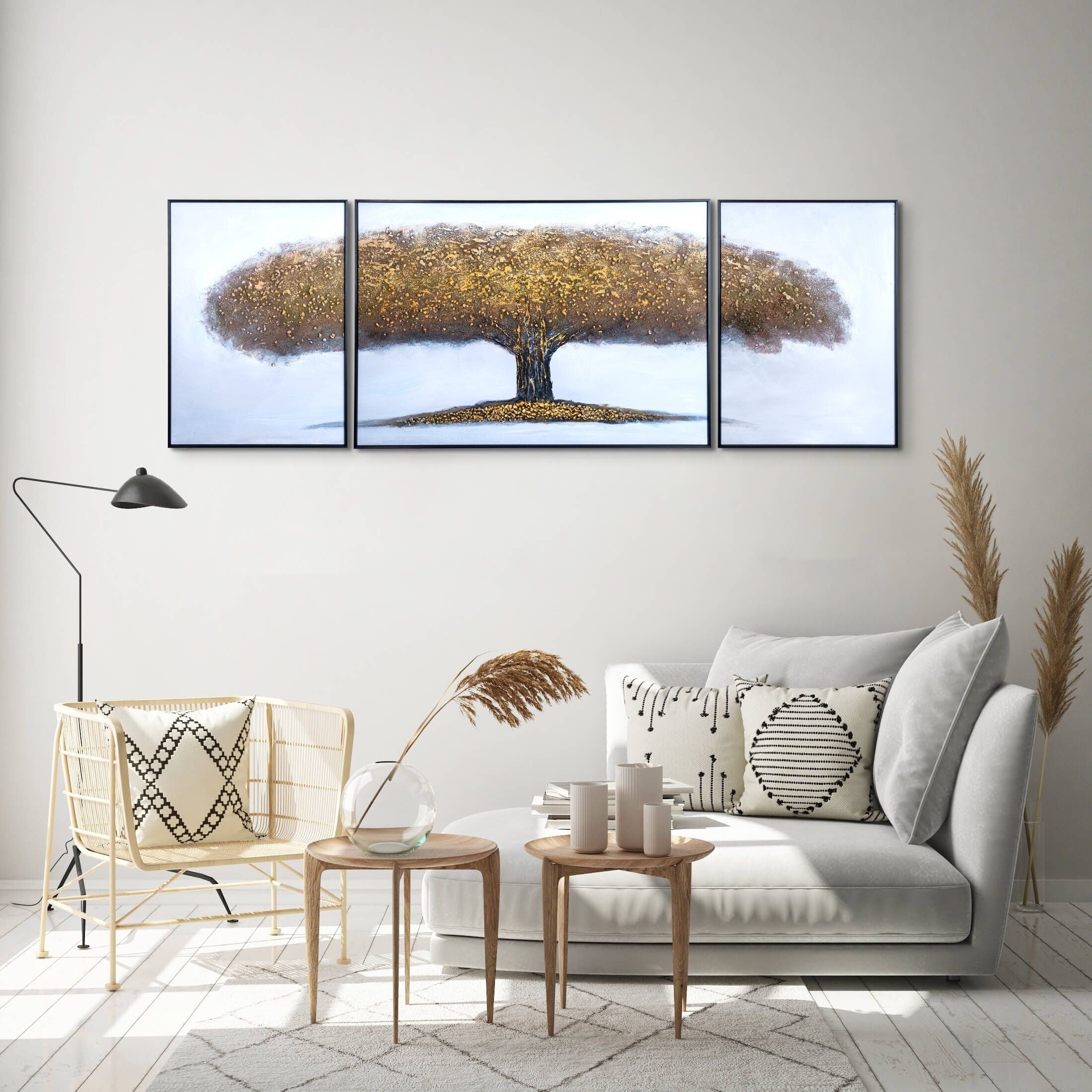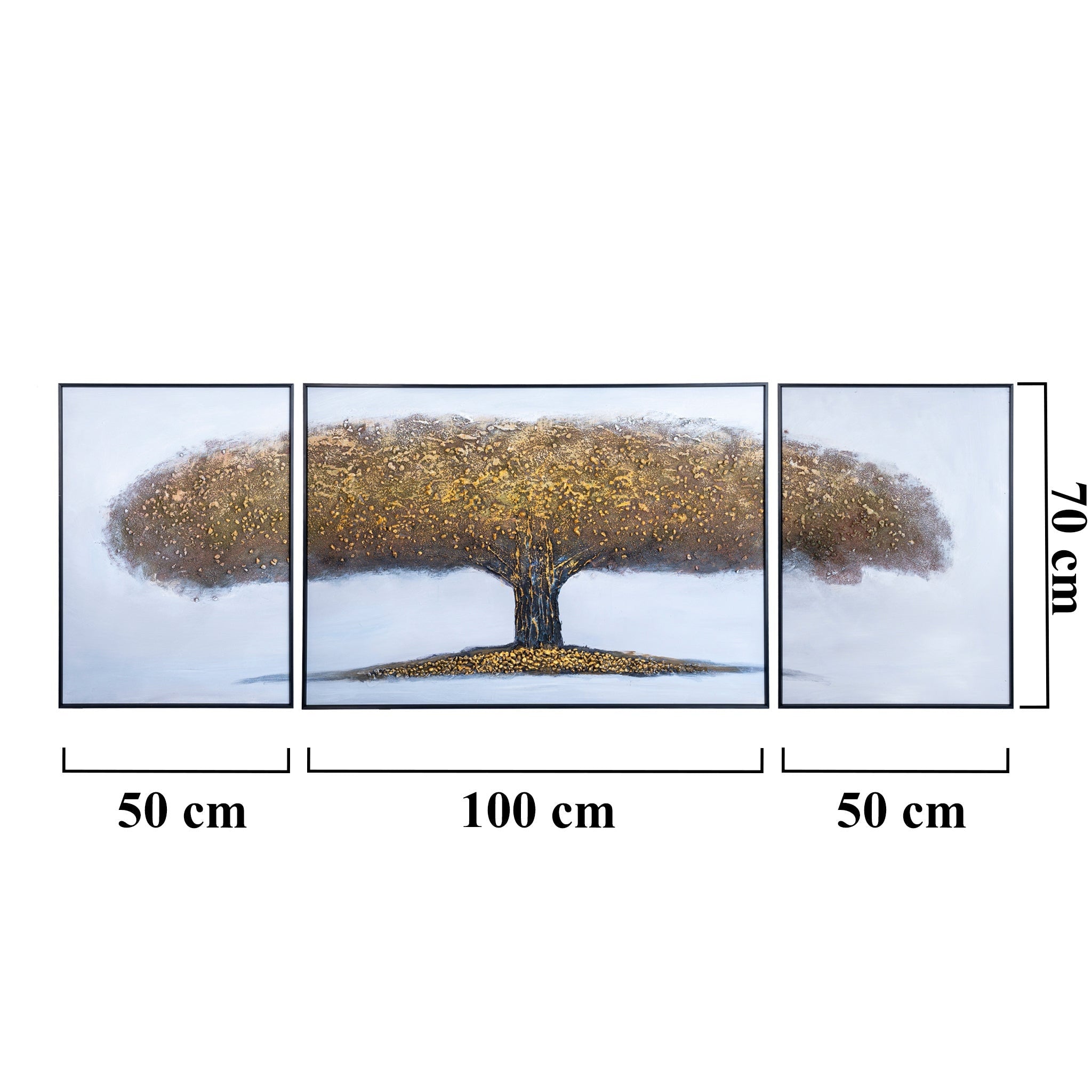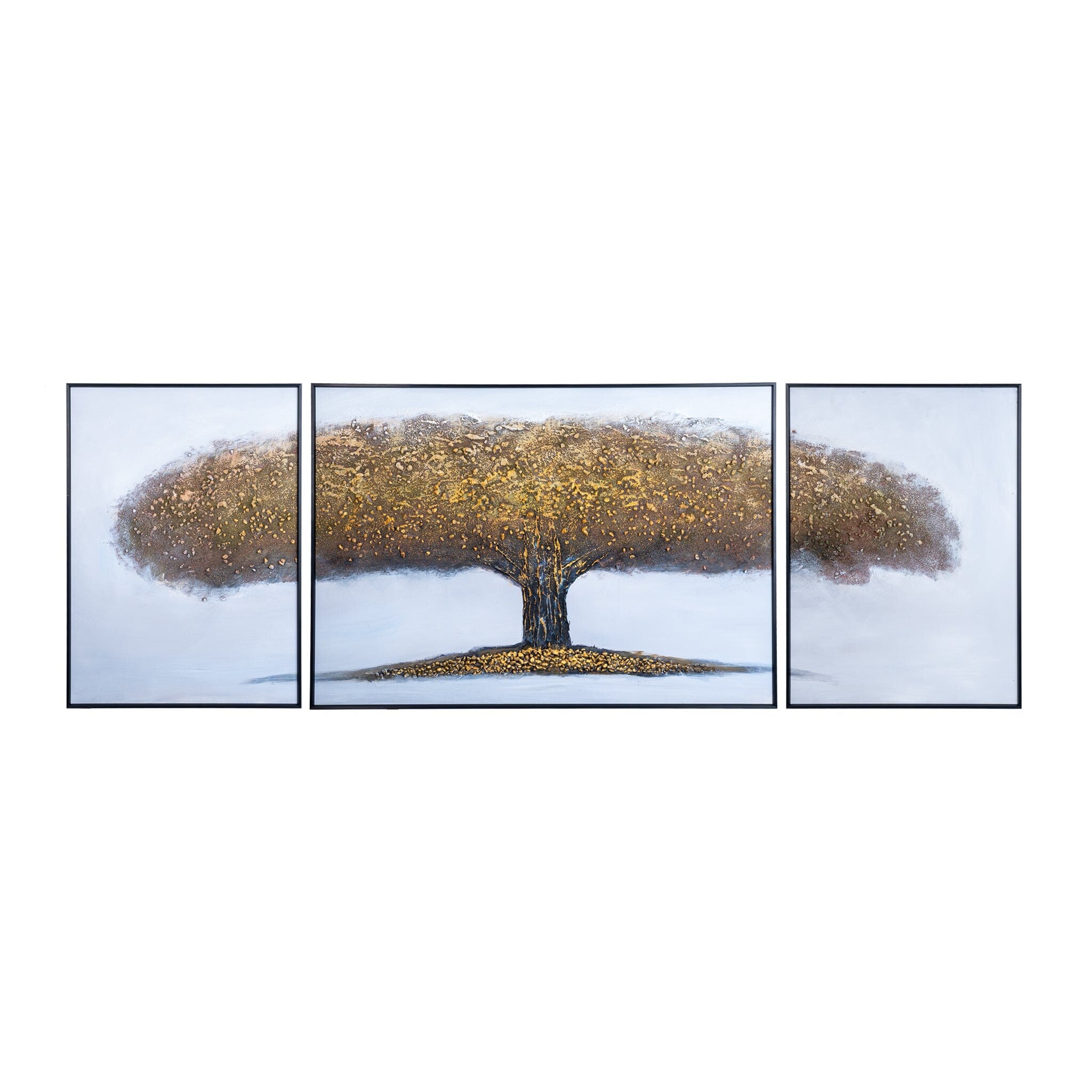 Golden Tree Of Life Trio, 79" Large Textured Impasto Canvas Art Home Decor