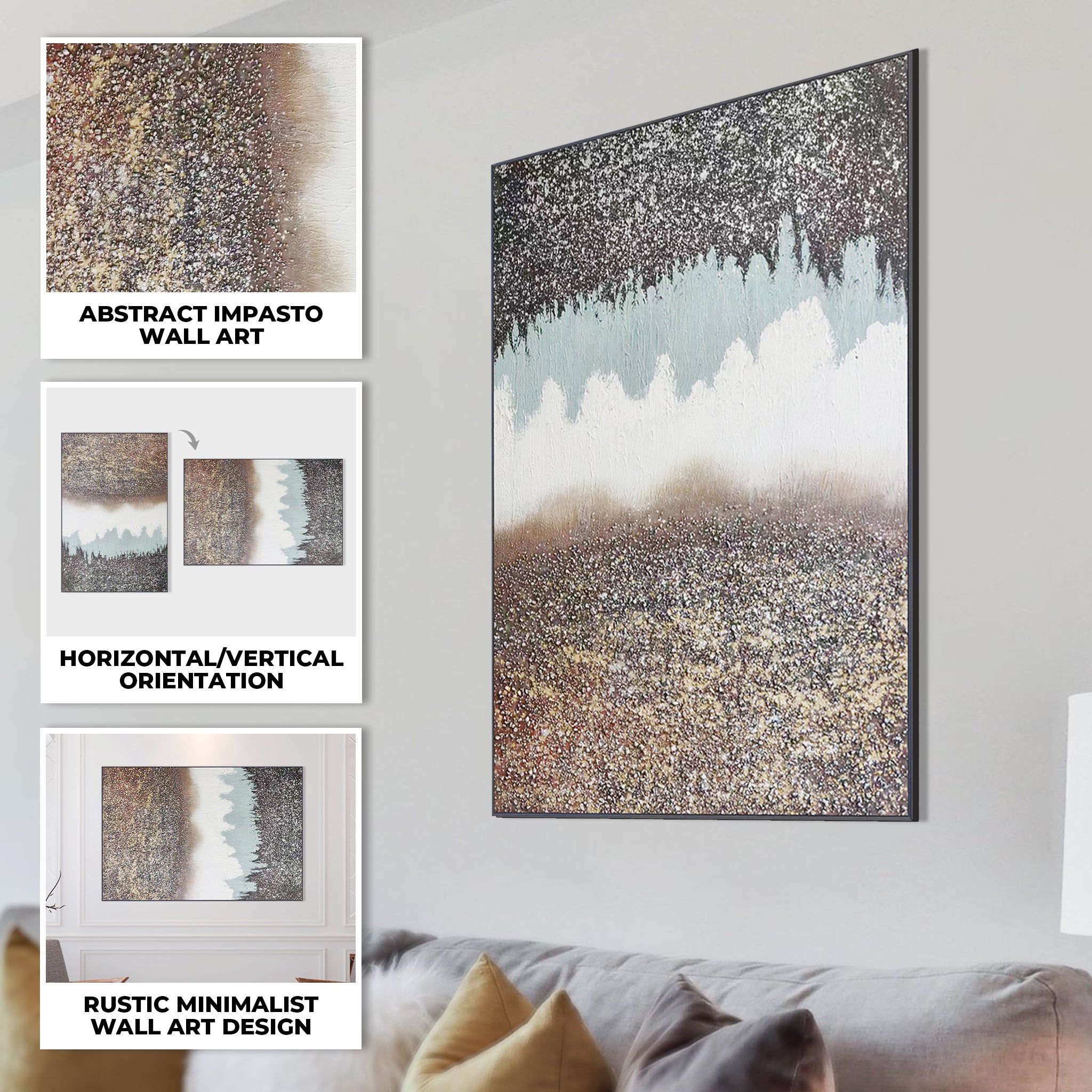 • TEXTURED ARTWORK: Thick textured impasto technique makes this wall art stand out from other abstract themed paintings.