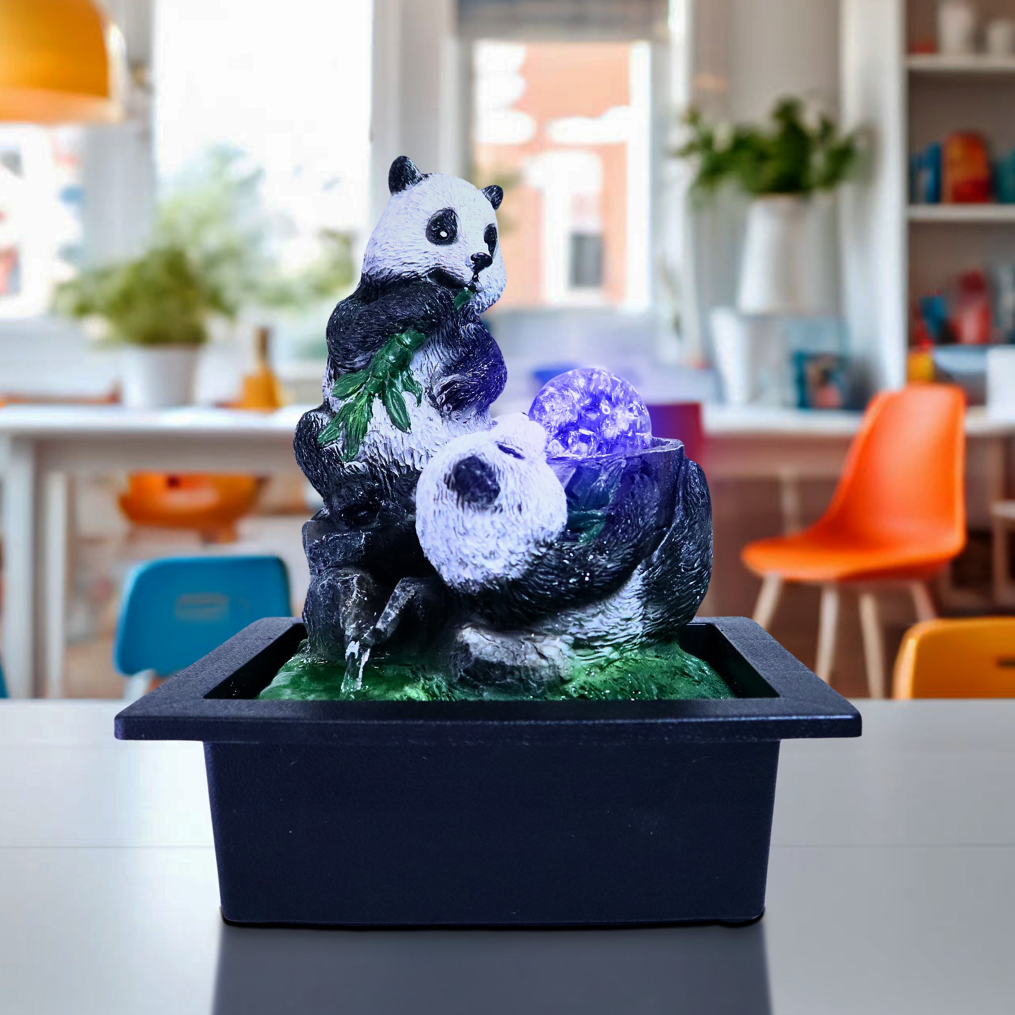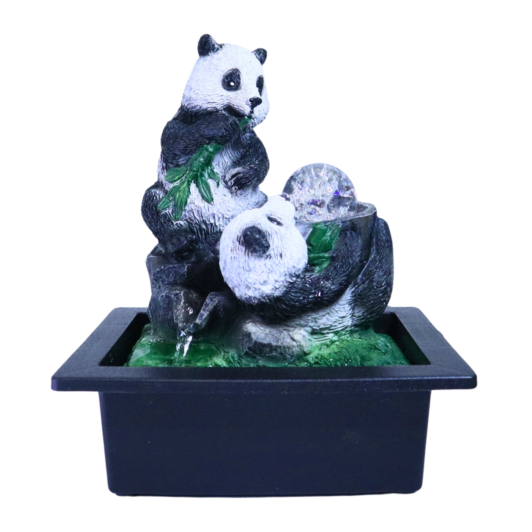 Indoor Panda Fountain, Electric Light, Crystal Ball and Pump Desktop Decor Black White 11 inch 28 cm