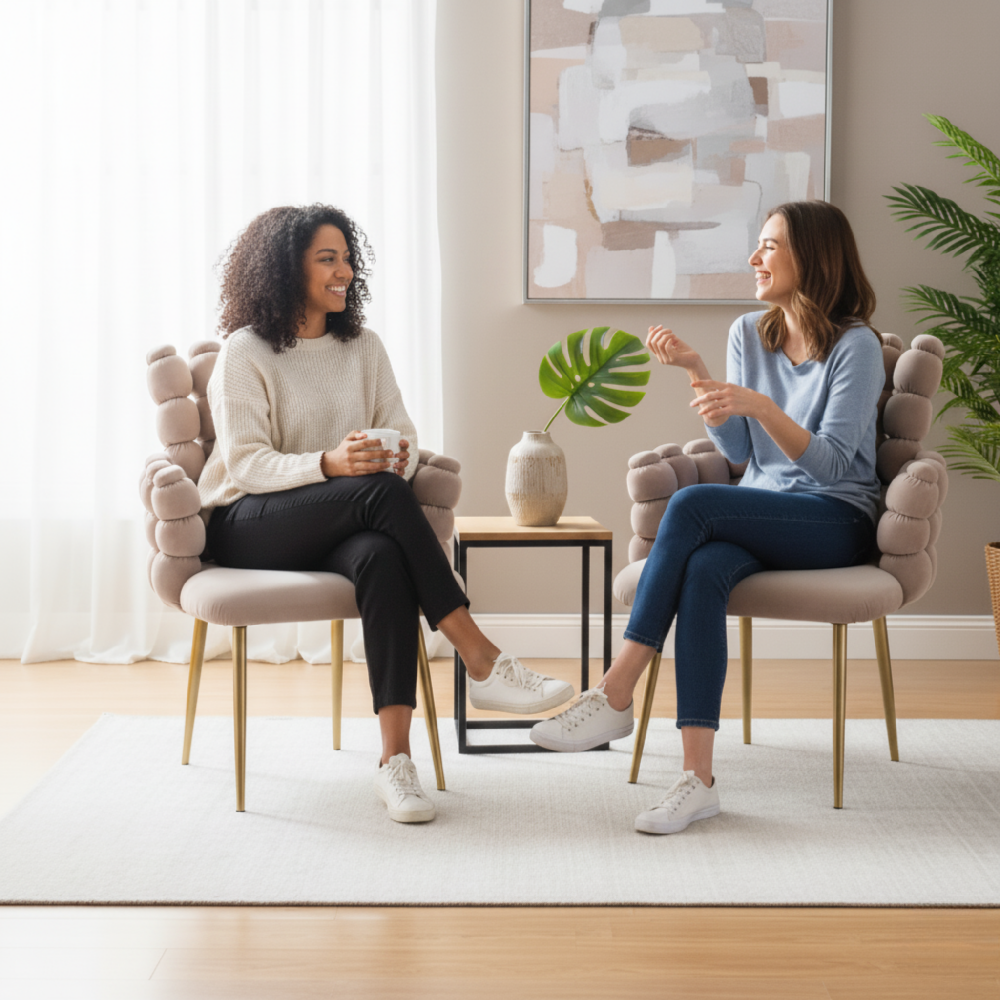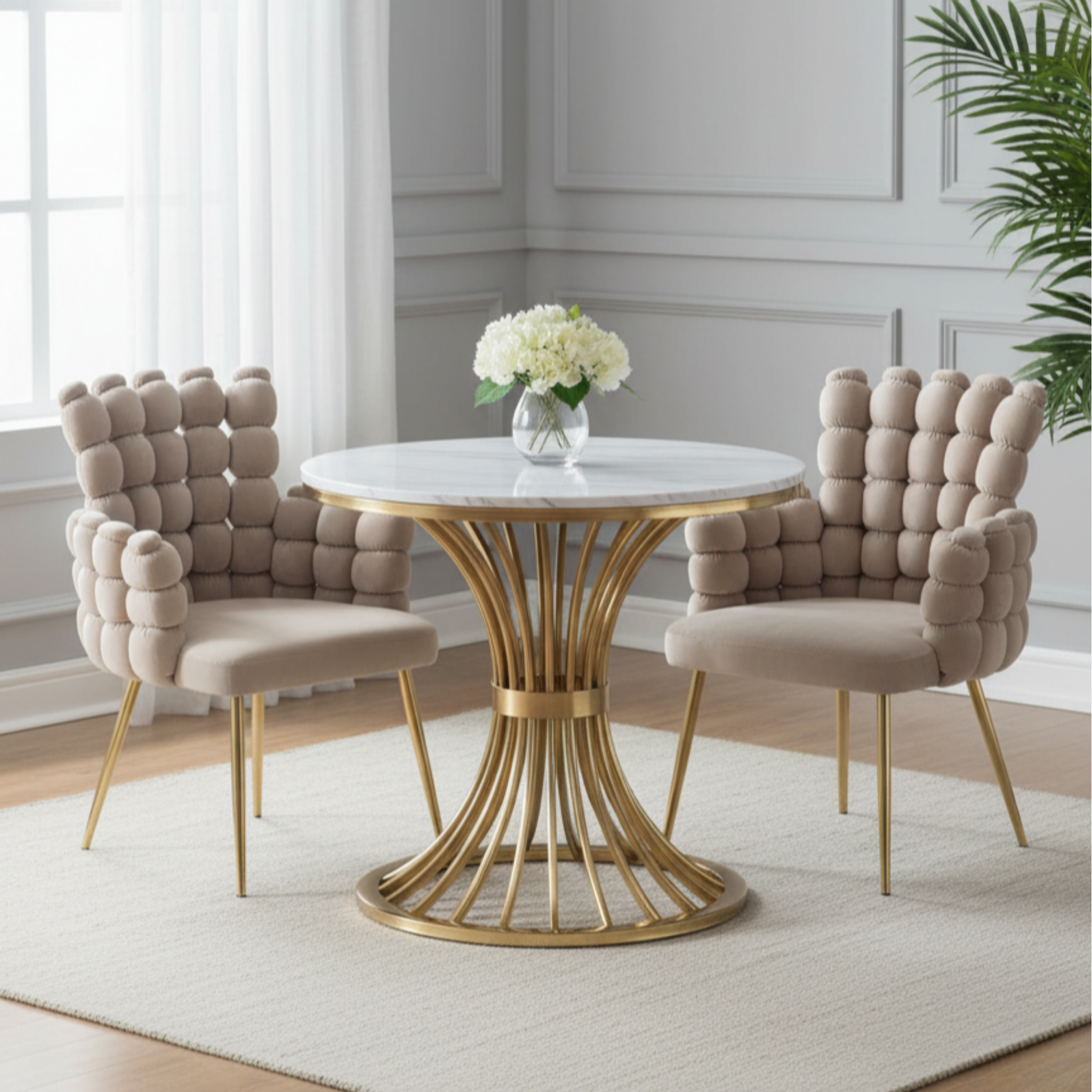 Set of 2 Modern Beige Upholstered Accent Chairs with Elegant Gold Metal Frames, Stylish & Comfortable Seating, Home Office Decor