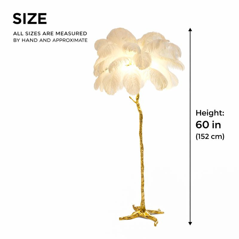 Luxurious Ostrich Feather Floor Lamp, Elegant Gold Branch LED Standing Light, Home or Office Decor