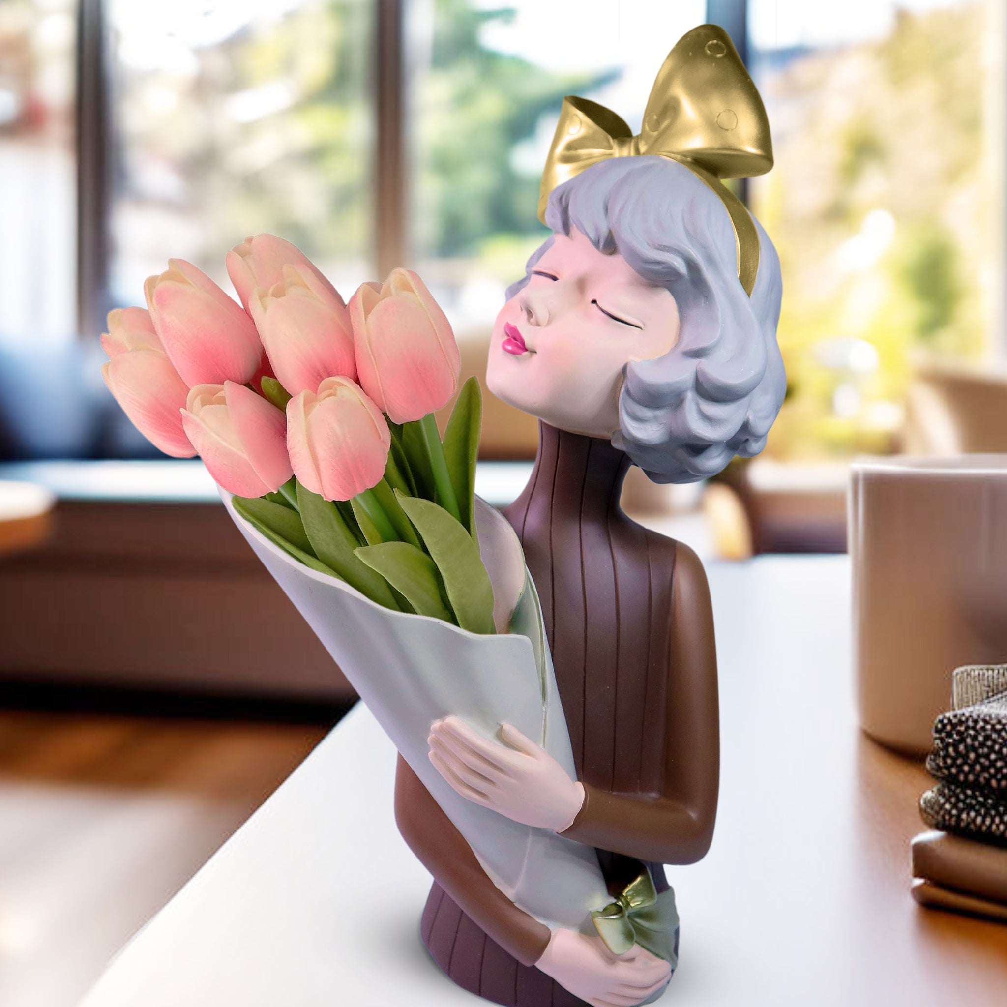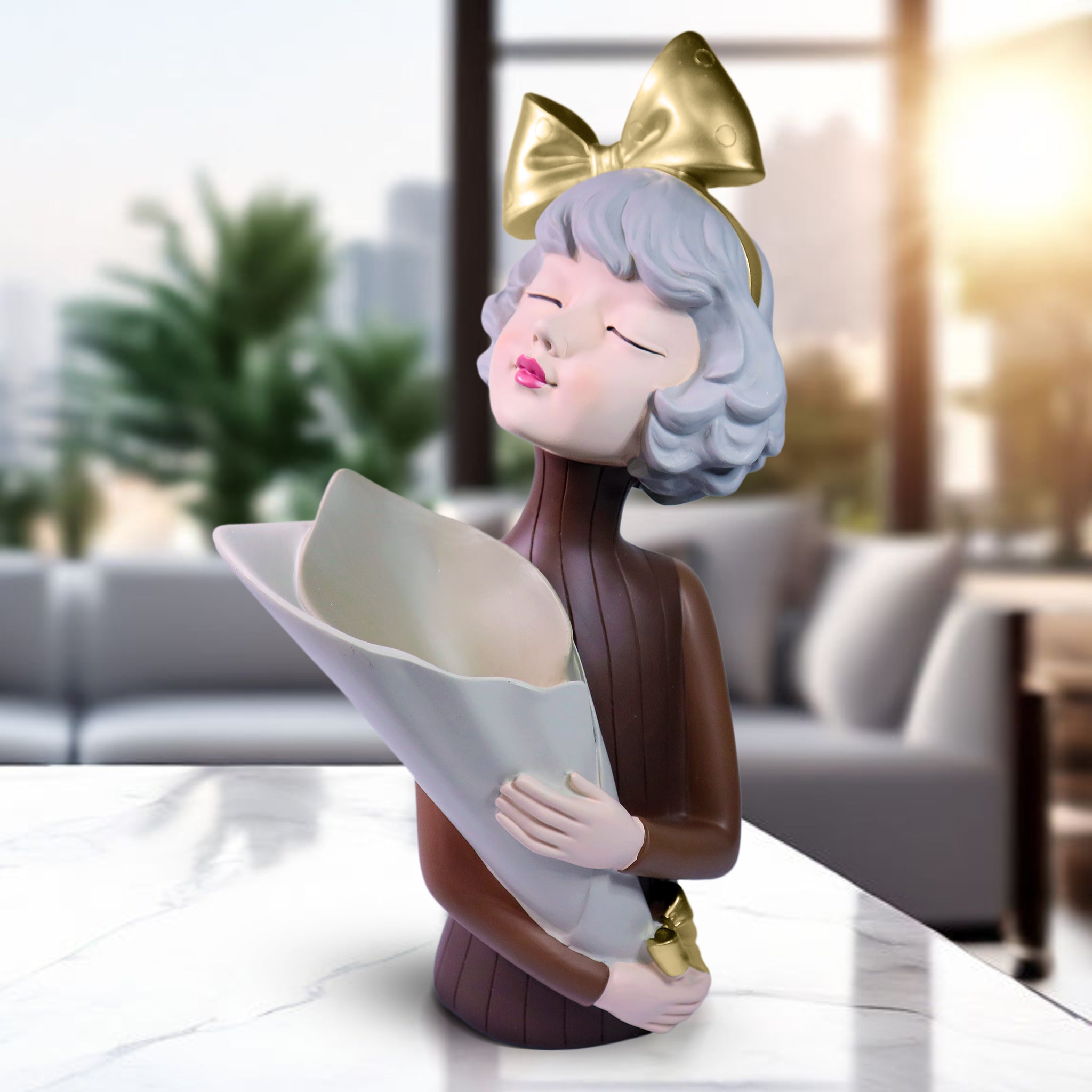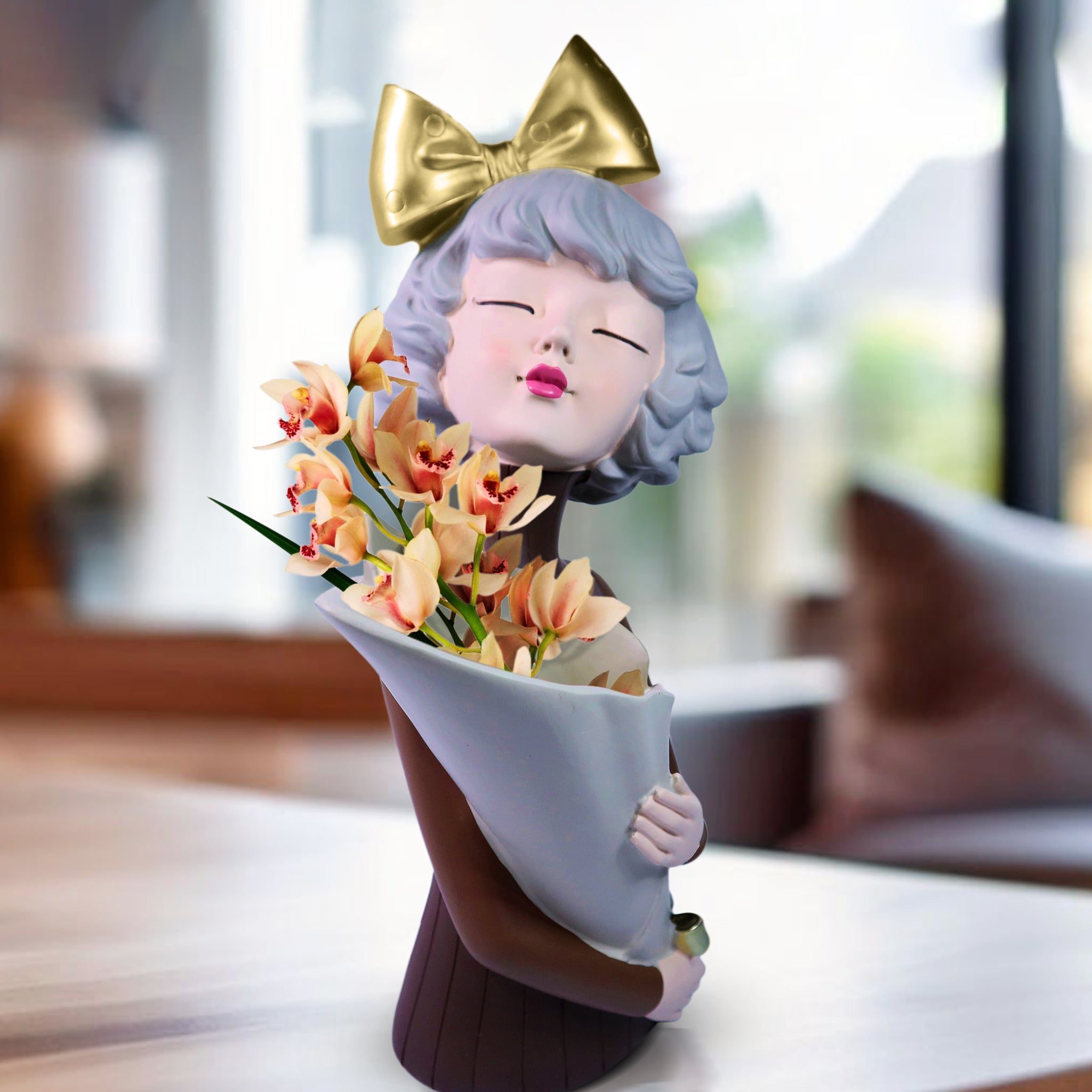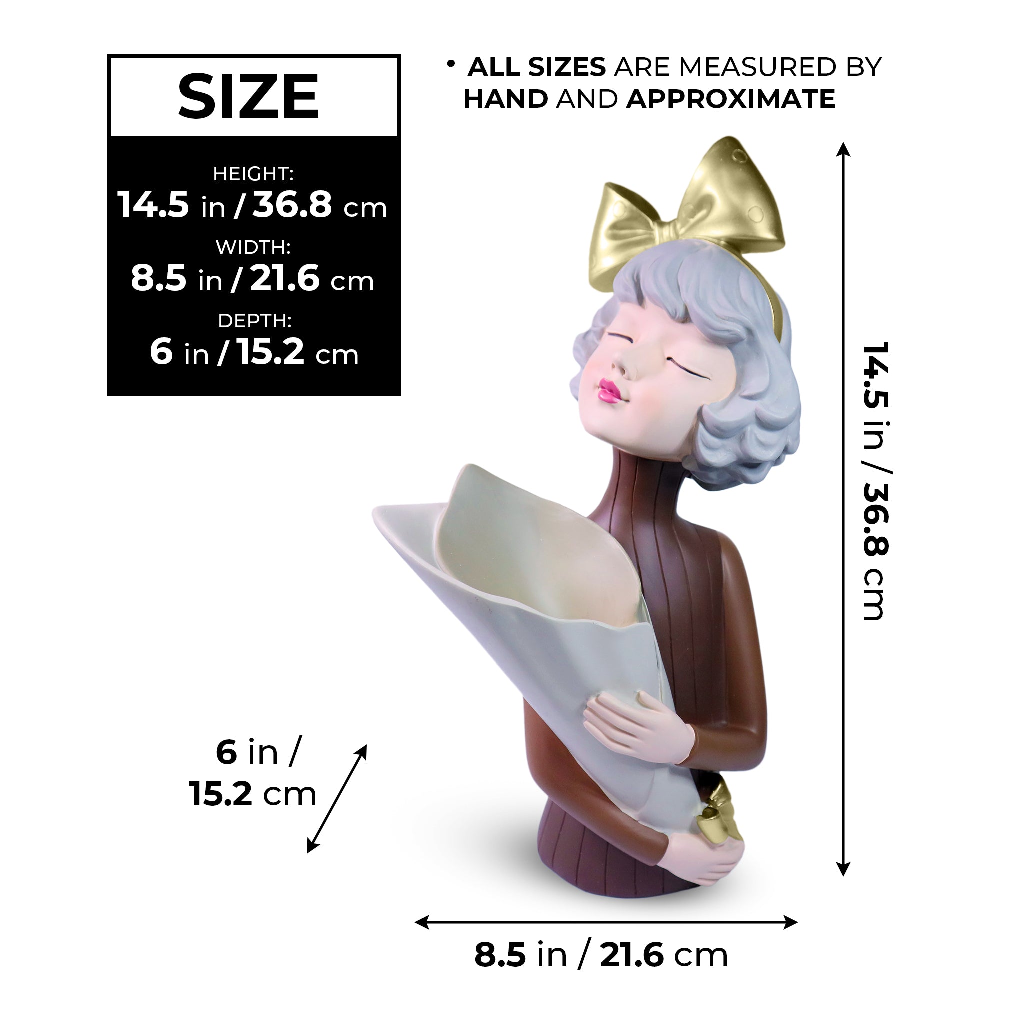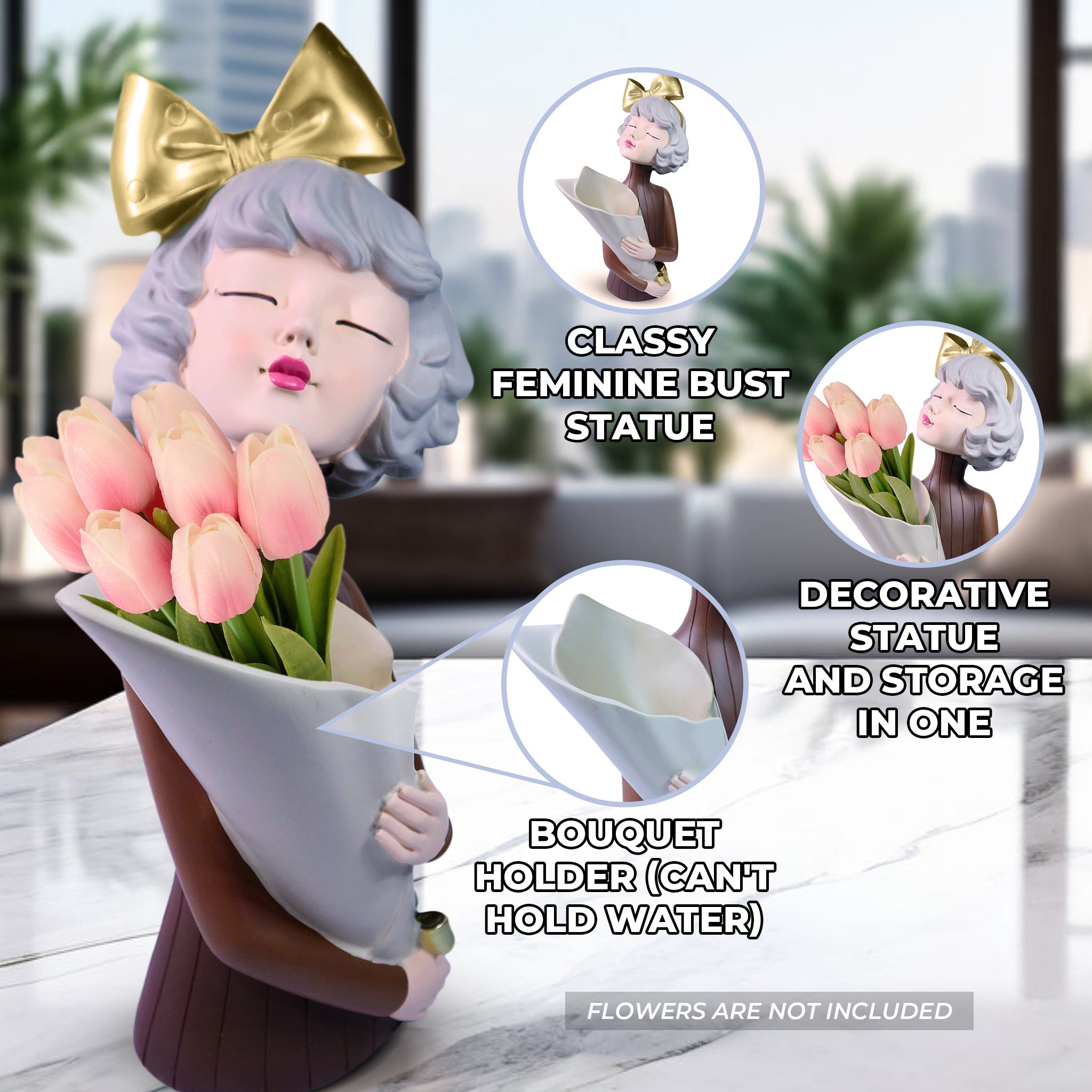 Female Bust Sculpture, Storage, Vase, Bouquet Holder, 15" Tabletop Decor